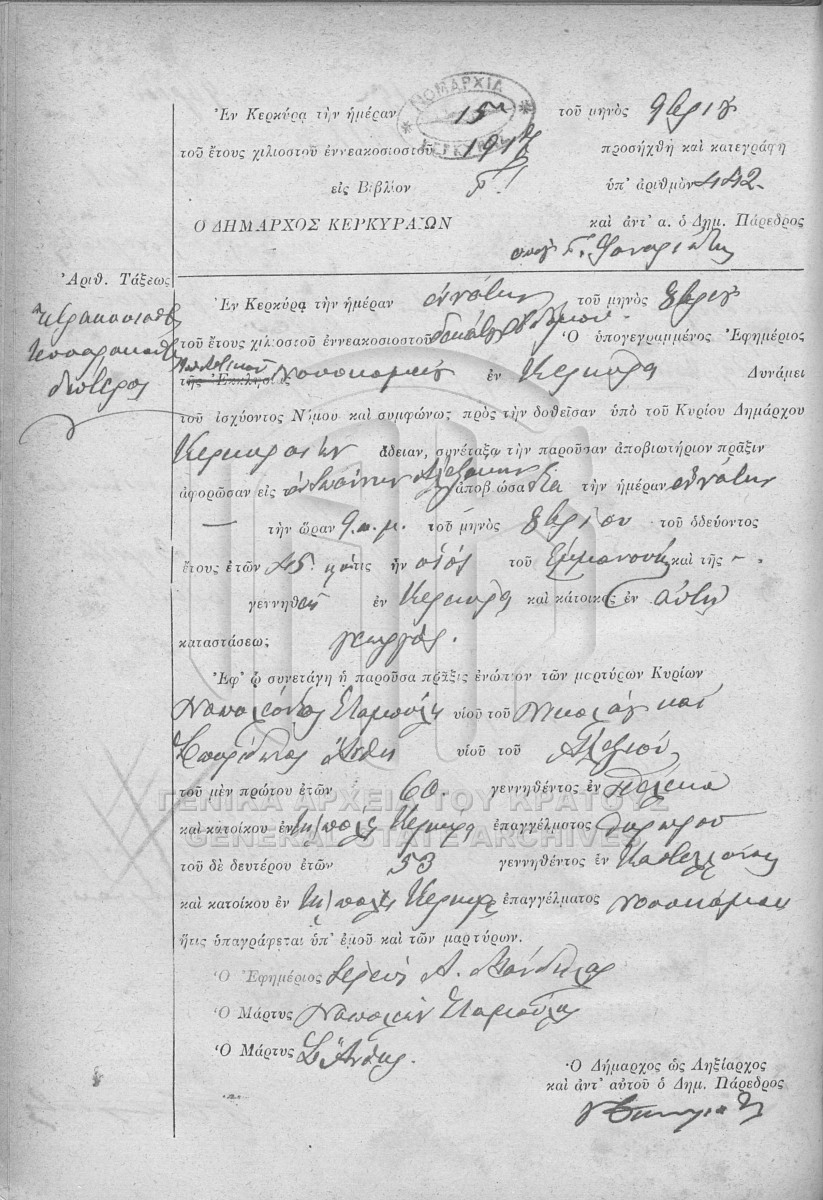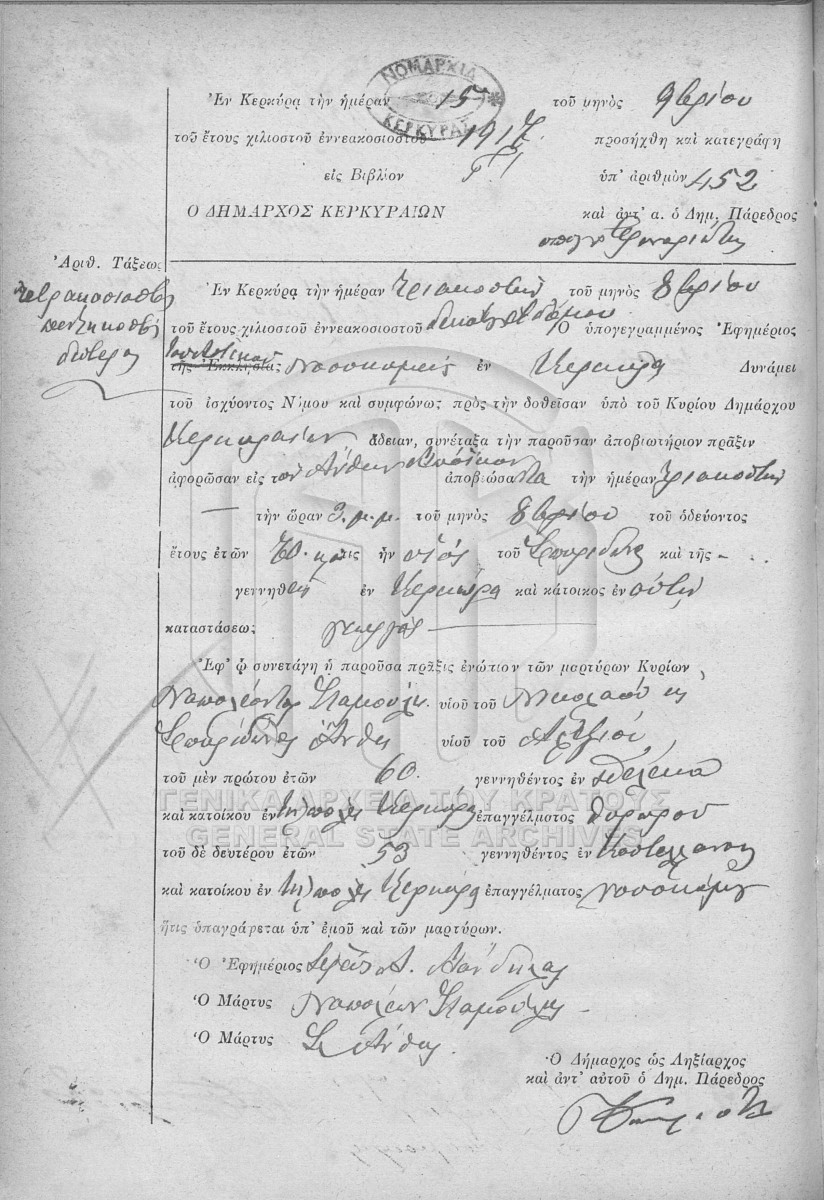 Υποφάκελος #003 - ΛΗΞΙΑΡΧΕΙΟ ΚΕΡΚΥΡΑΣ  [1917]