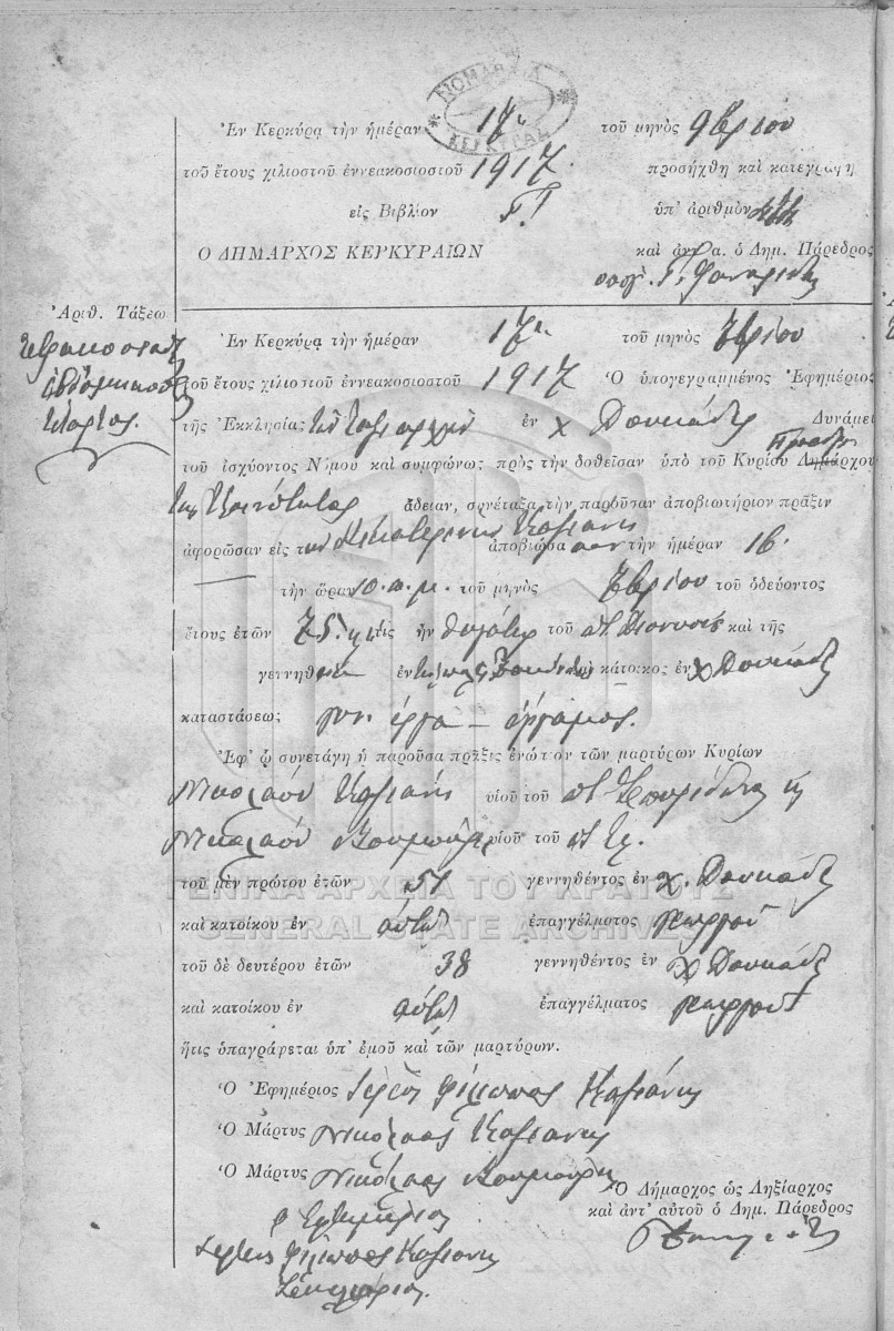 File #1917 - ΛΗΞΙΑΡΧΕΙΟ ΚΕΡΚΥΡΑΣ  [1917]