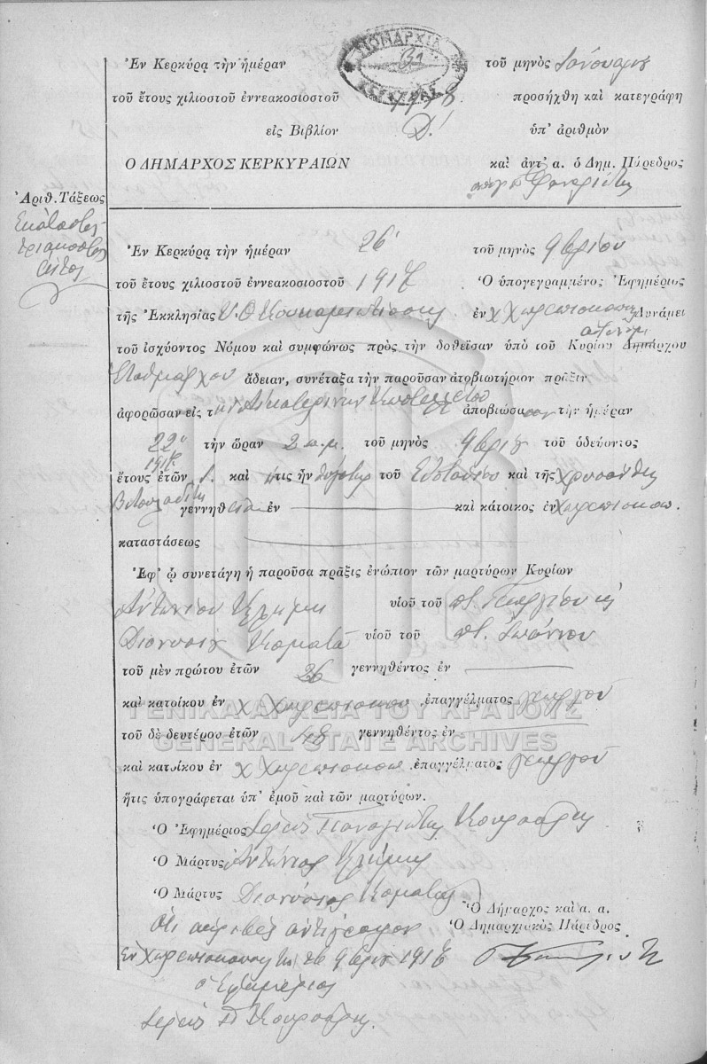 File #1917 - ΛΗΞΙΑΡΧΕΙΟ ΚΕΡΚΥΡΑΣ  [1917]