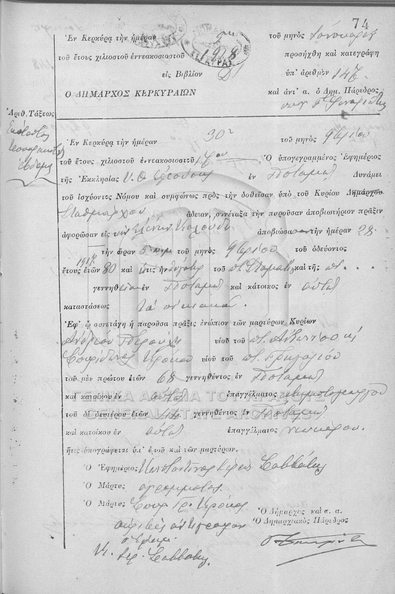 ΛΗΞΙΑΡΧΕΙΟ ΚΕΡΚΥΡΑΣ - Ληξιαρχικές Πράξεις Θανάτων  [1841 - 1932]