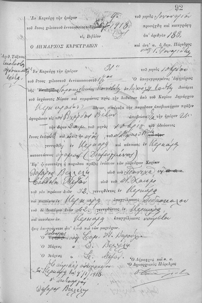 Υποφάκελος #004 - ΛΗΞΙΑΡΧΕΙΟ ΚΕΡΚΥΡΑΣ  [1917]