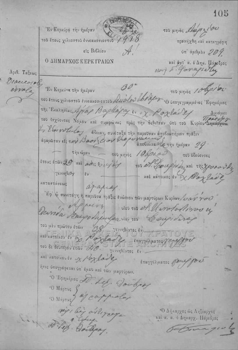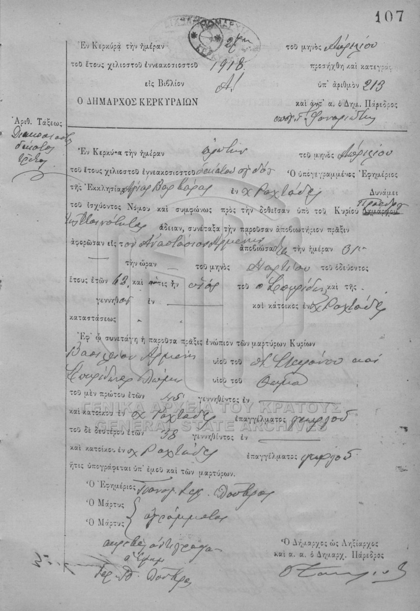 File #1918 - ΛΗΞΙΑΡΧΕΙΟ ΚΕΡΚΥΡΑΣ  [1918]