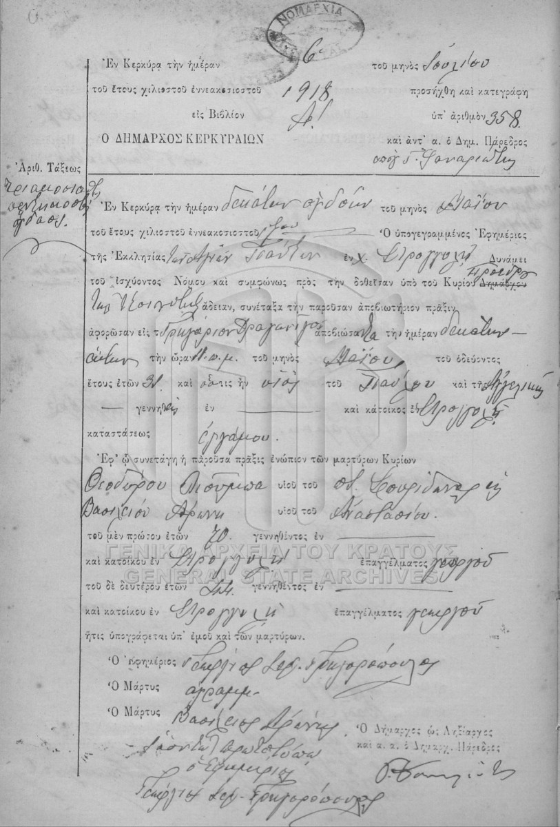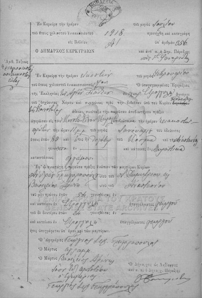 File #1918 - ΛΗΞΙΑΡΧΕΙΟ ΚΕΡΚΥΡΑΣ  [1918]