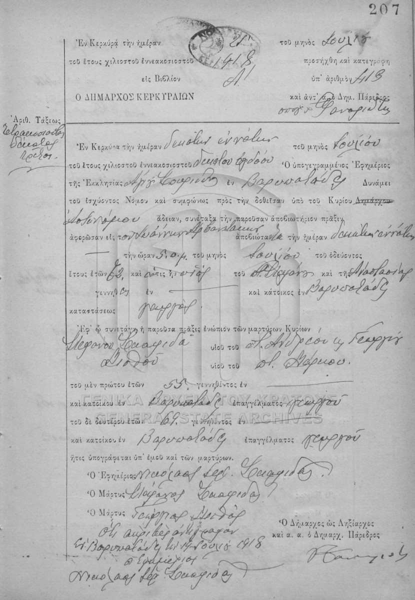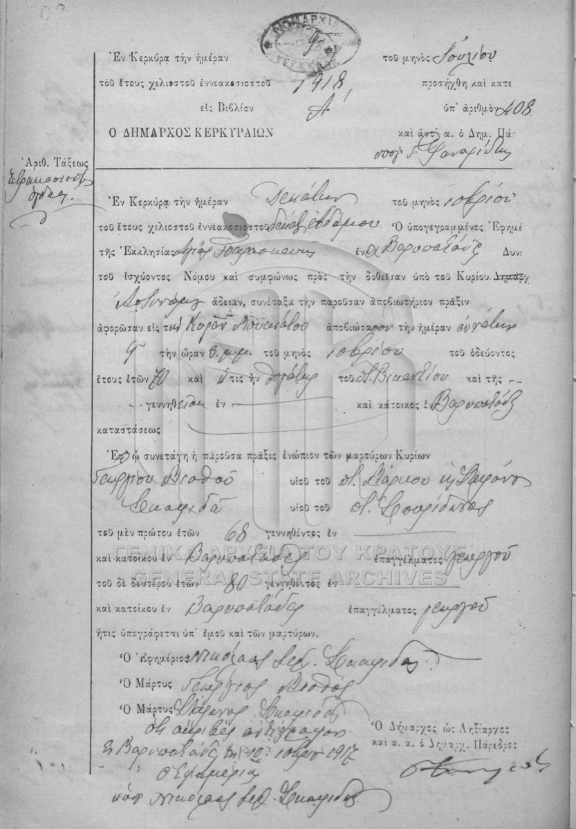 File #1918 - ΛΗΞΙΑΡΧΕΙΟ ΚΕΡΚΥΡΑΣ  [1918]