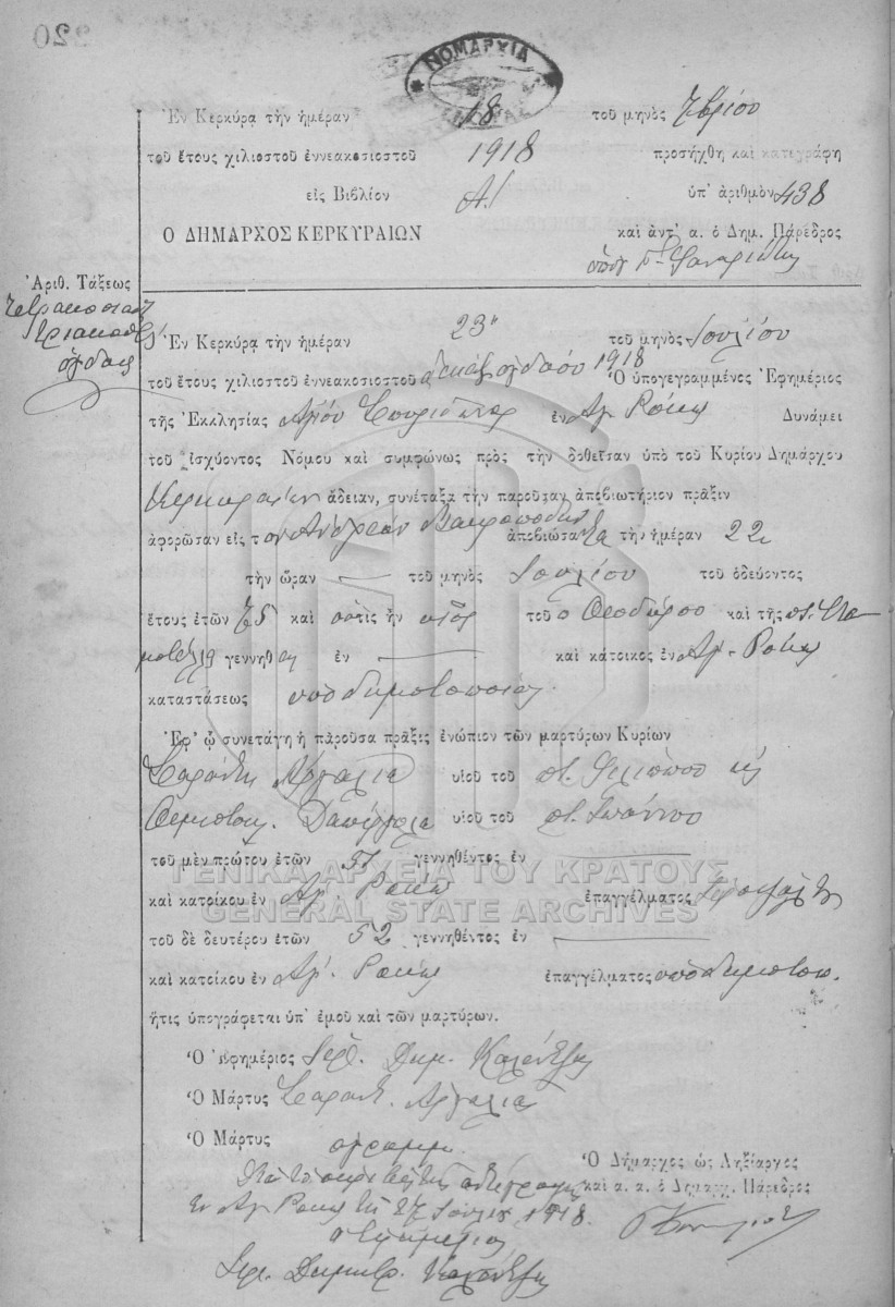 [Subfile] GRGSA-KER_REGD00.00.F001918.SF0001 Subfile #001 - ΛΗΞΙΑΡΧΕΙΟ ΚΕΡΚΥΡΑΣ [1918] Βιβλίο 1. Αριθμός πράξεων 1 - 600. |