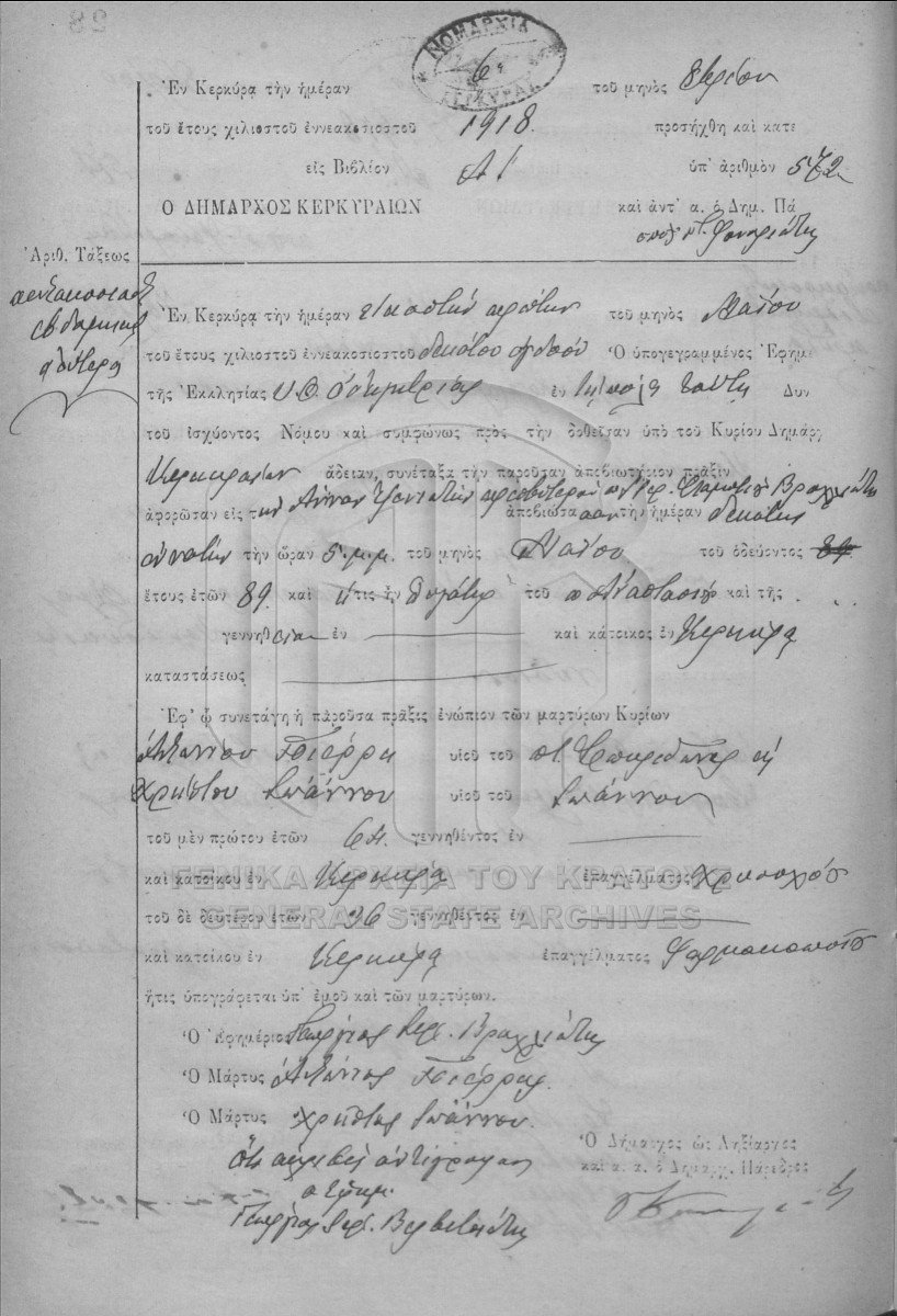 File #1918 - ΛΗΞΙΑΡΧΕΙΟ ΚΕΡΚΥΡΑΣ  [1918]
