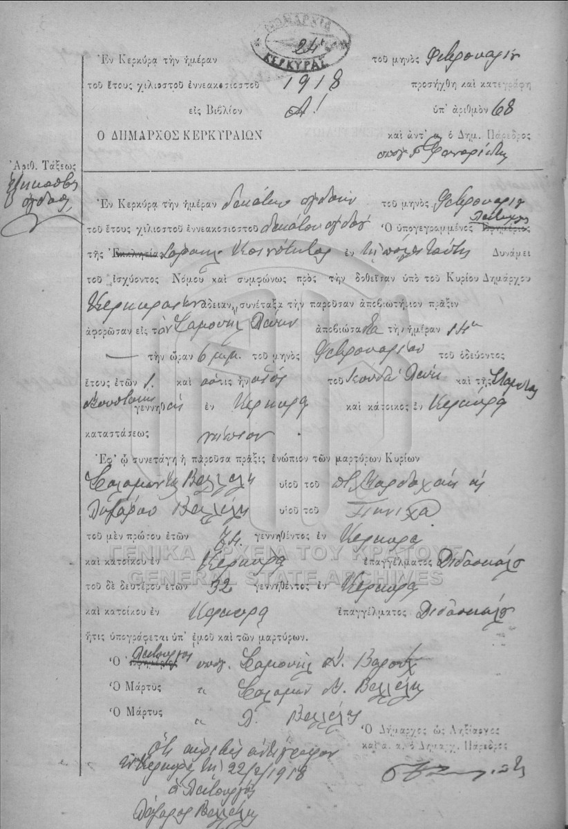Υποφάκελος #001 - ΛΗΞΙΑΡΧΕΙΟ ΚΕΡΚΥΡΑΣ  [1918]