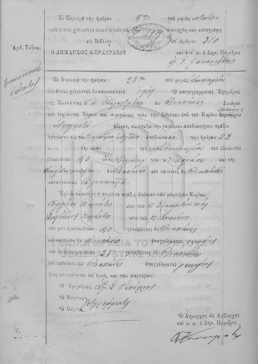 Υποφάκελος #001 - ΛΗΞΙΑΡΧΕΙΟ ΚΕΡΚΥΡΑΣ  [1919]
