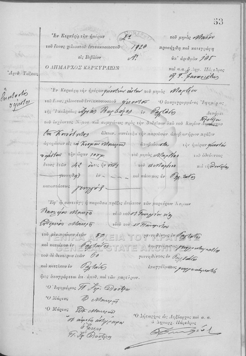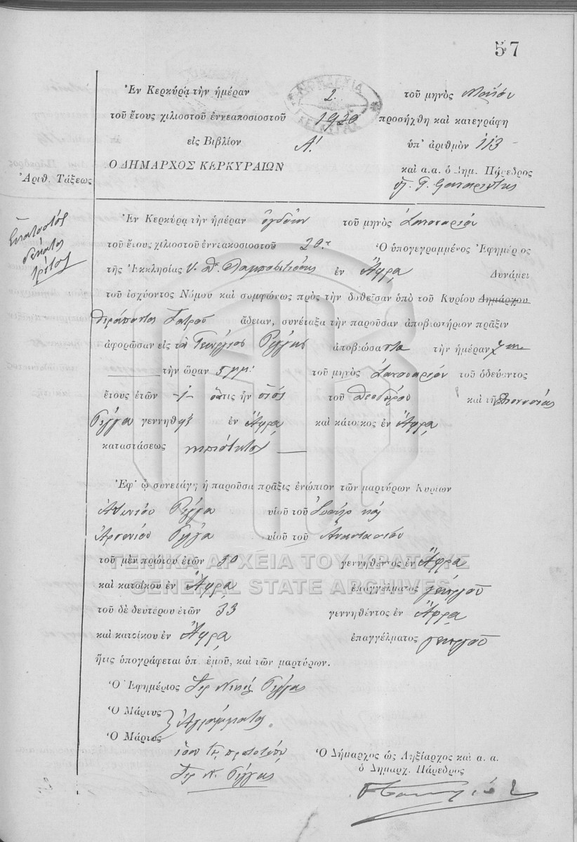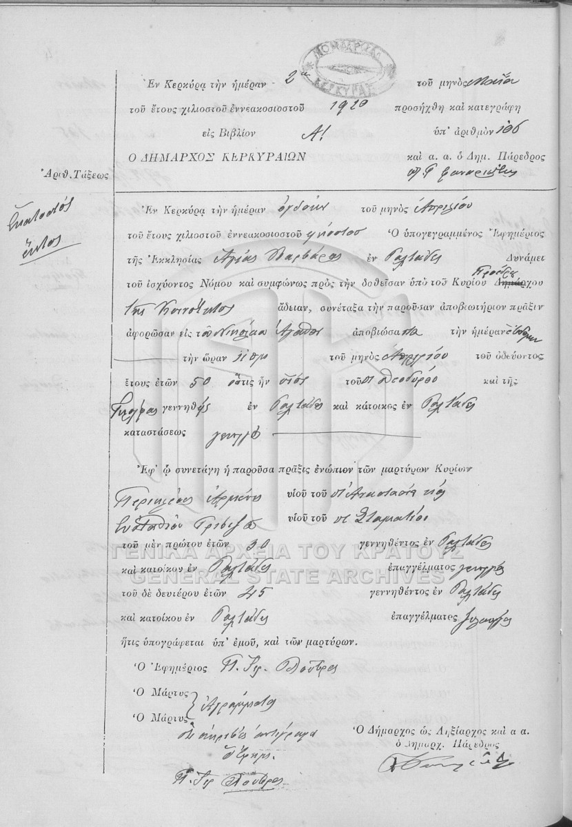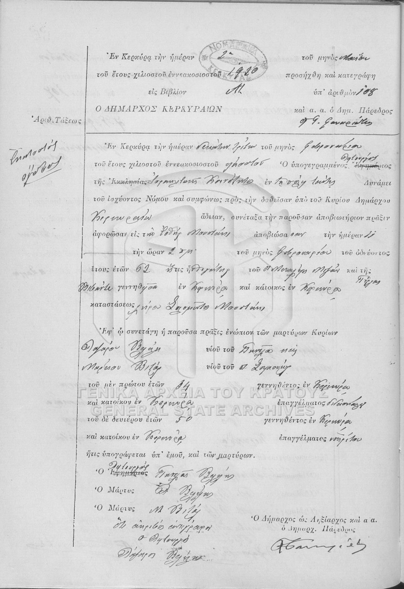 Υποφάκελος #001 - ΛΗΞΙΑΡΧΕΙΟ ΚΕΡΚΥΡΑΣ  [1920]
