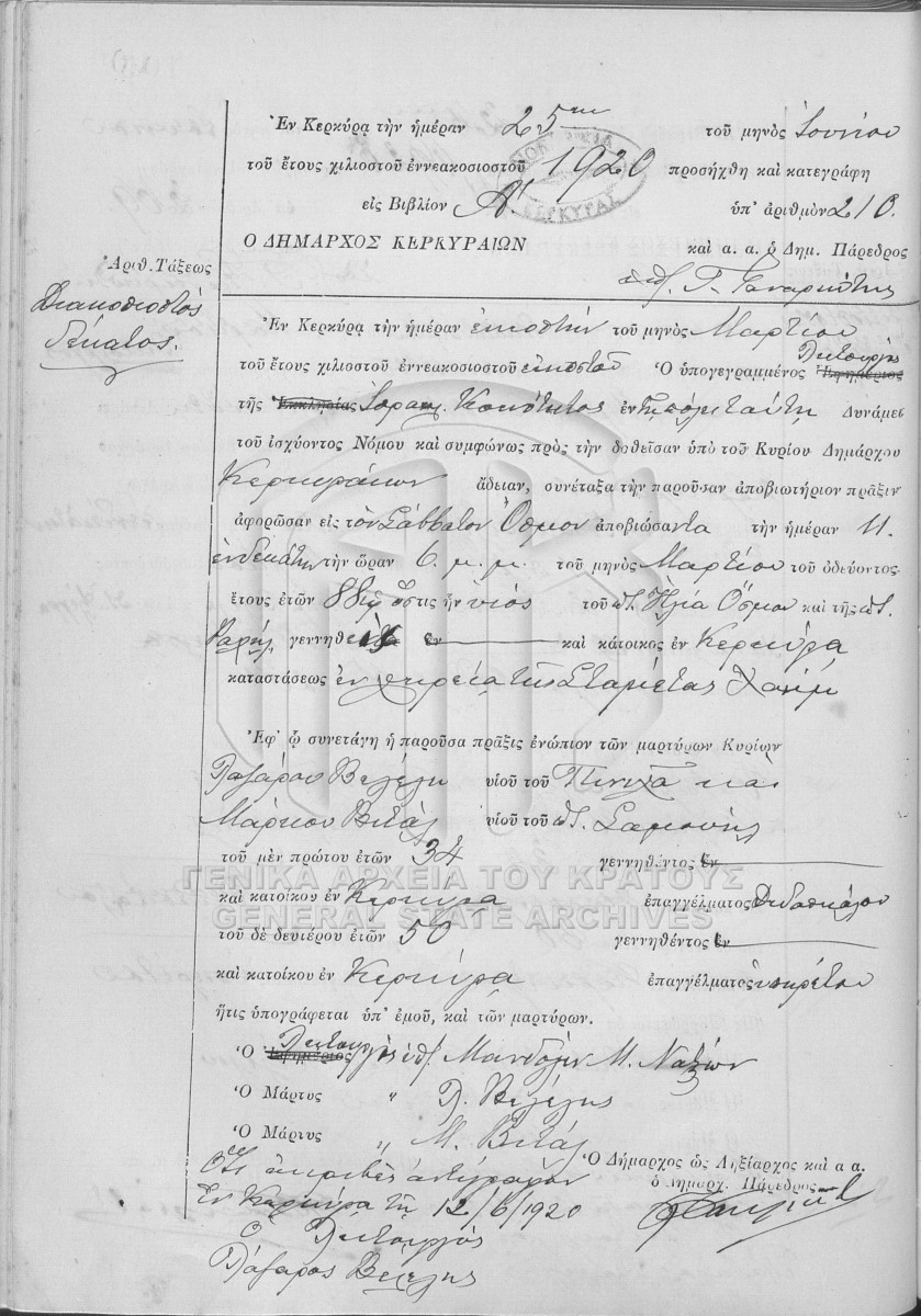 Subfile #001 - ΛΗΞΙΑΡΧΕΙΟ ΚΕΡΚΥΡΑΣ  [1920]