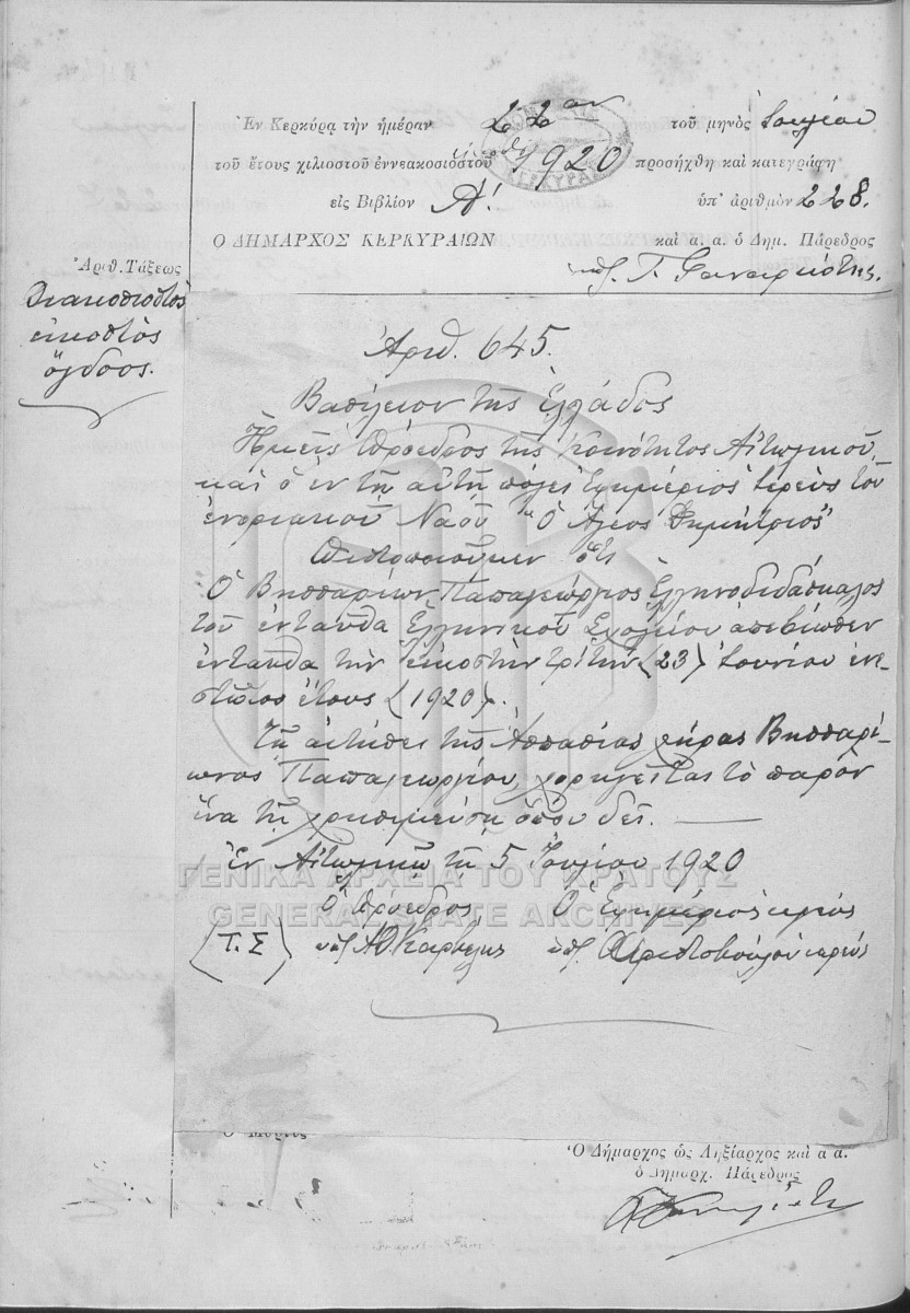 [Υποφάκελος] GRGSA-KER_REGD00.00.F001920.SF0001 Υποφάκελος #001 - ΛΗΞΙΑΡΧΕΙΟ ΚΕΡΚΥΡΑΣ [1920] Βιβλίο πρώτο, αριθμός πράξεων 1 - 600. |
