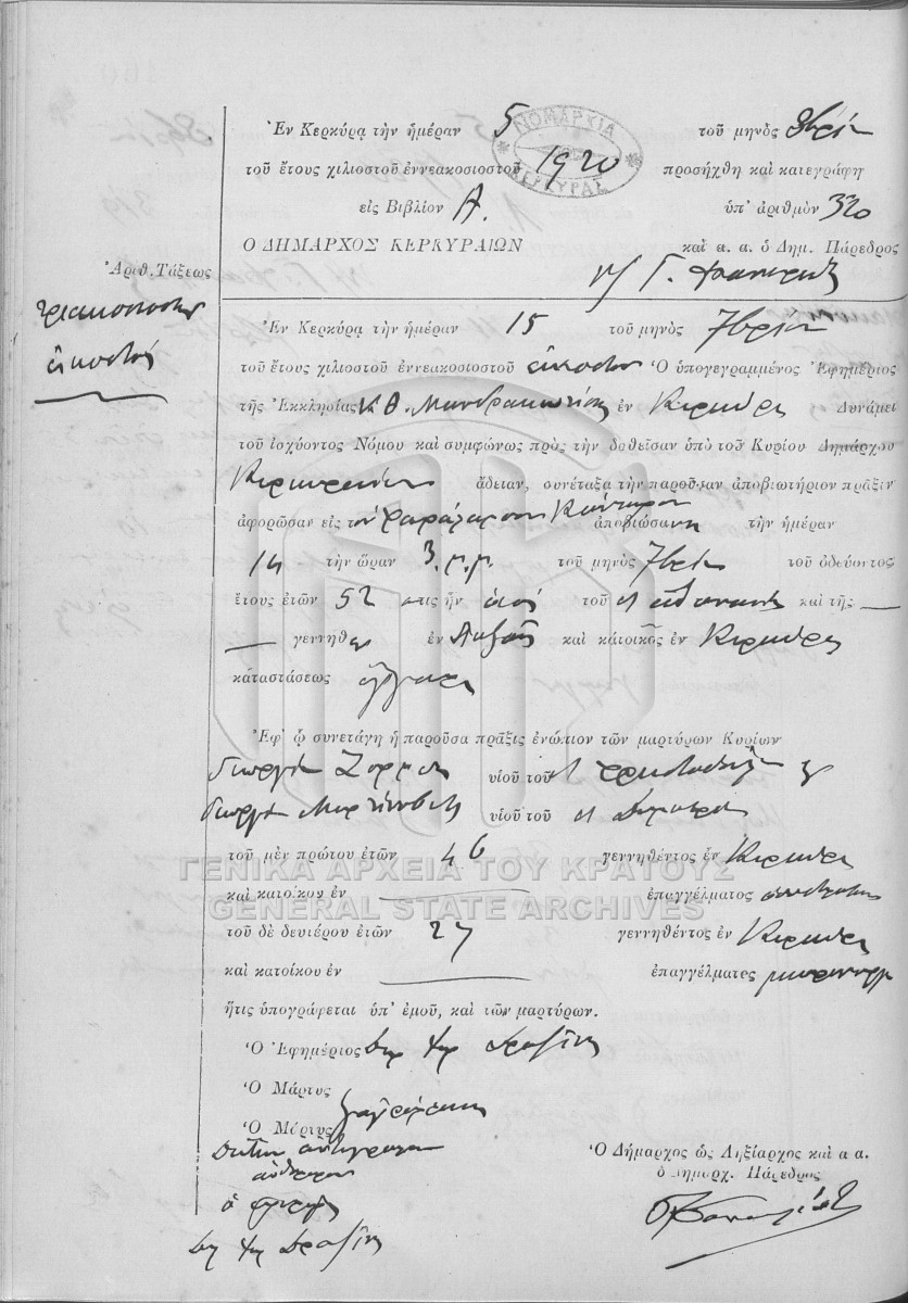 Subfile #001 - ΛΗΞΙΑΡΧΕΙΟ ΚΕΡΚΥΡΑΣ  [1920]