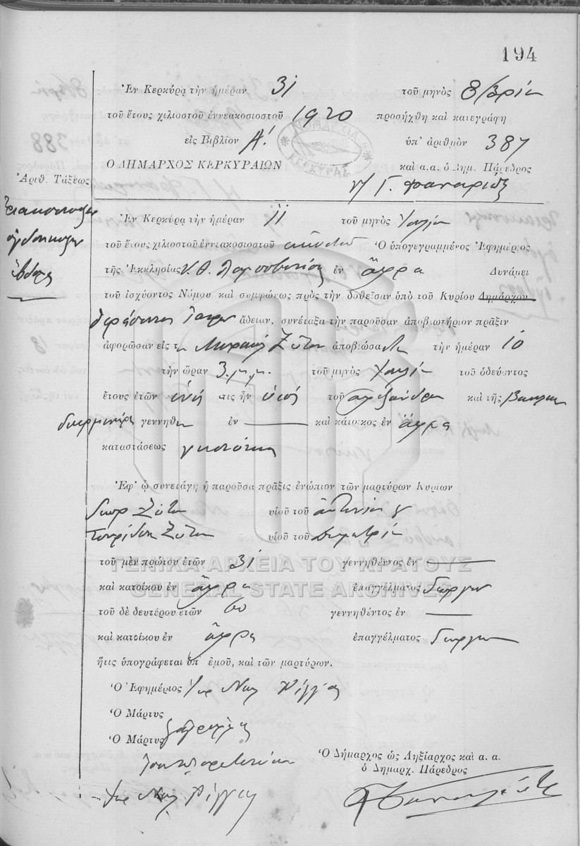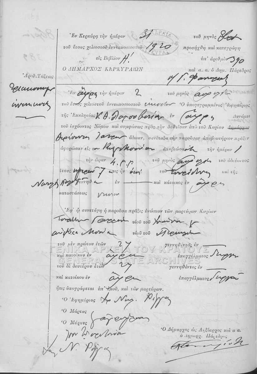 Fichier #1920 - ΛΗΞΙΑΡΧΕΙΟ ΚΕΡΚΥΡΑΣ  [1920]