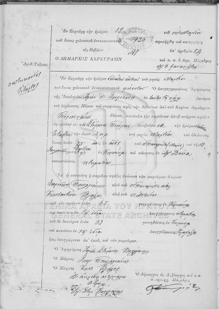 [Αρχείο] GRGSA-KER_REGD00 ΛΗΞΙΑΡΧΕΙΟ ΚΕΡΚΥΡΑΣ - Ληξιαρχικές Πράξεις Θανάτων [1841 - 1932] Περιεχόμενα: Αριθμός πράξεων 1 - 600. Βιβλίο 1. Αριθμός πράξεων 1 - 565. |