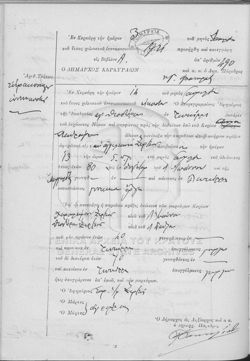 Υποφάκελος #001 - ΛΗΞΙΑΡΧΕΙΟ ΚΕΡΚΥΡΑΣ  [1920]