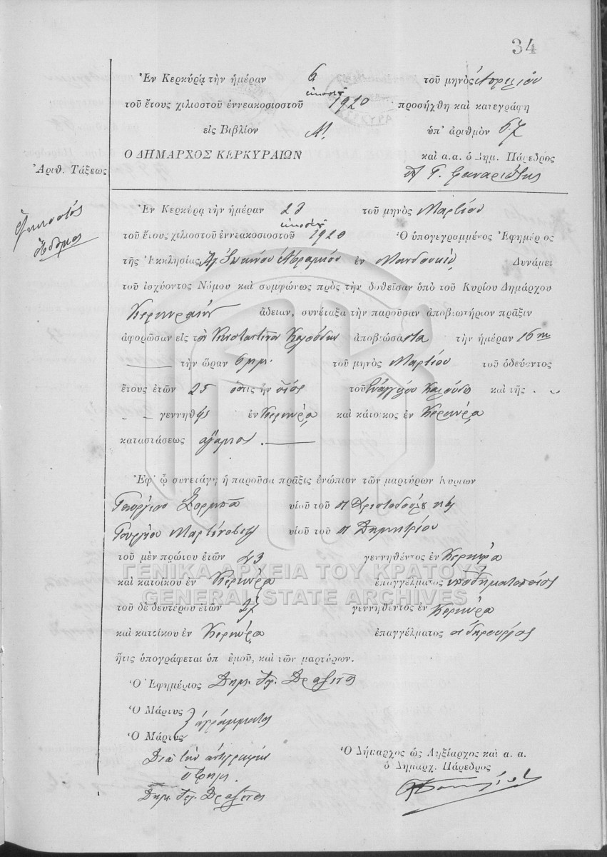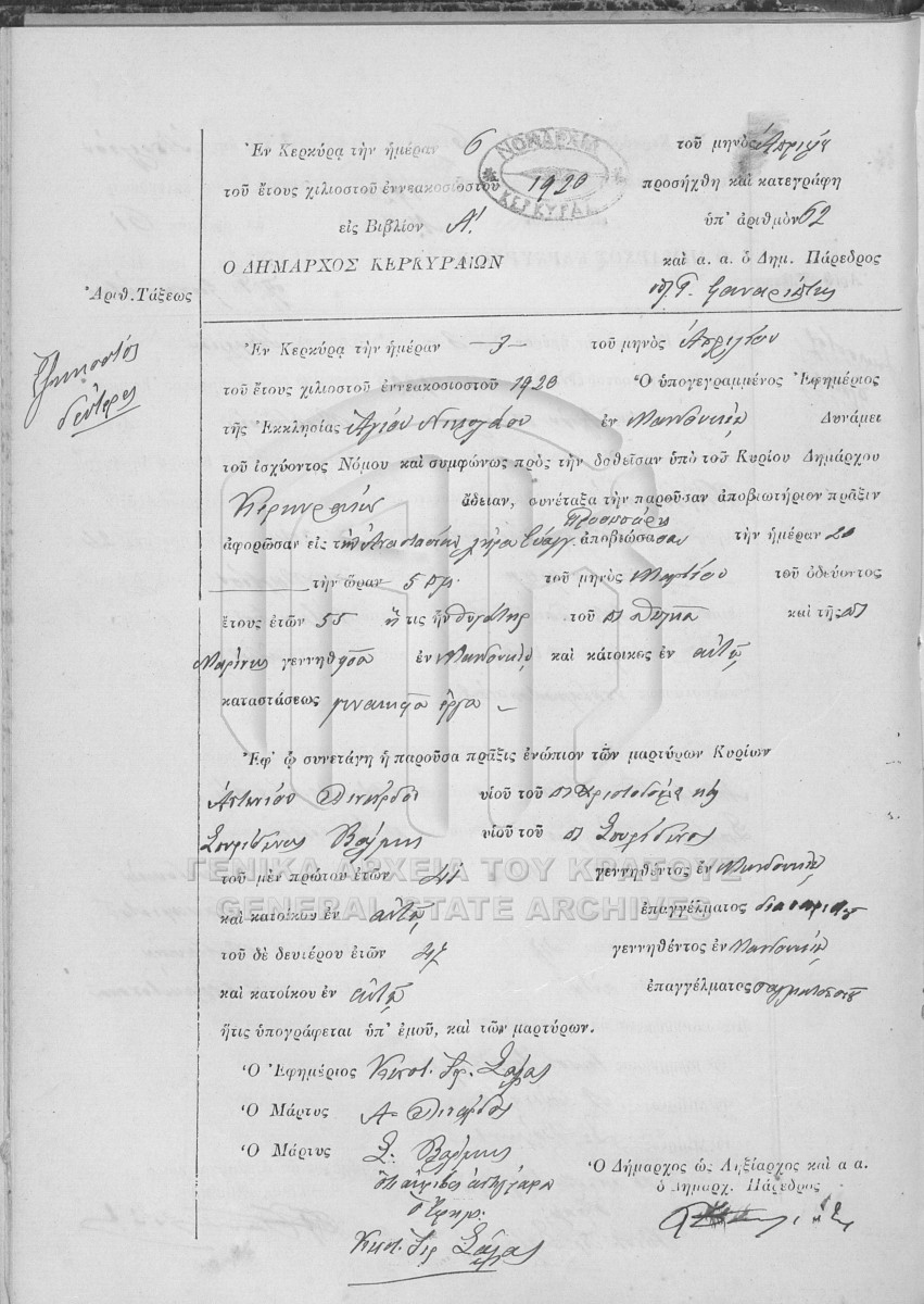 Fichier #1920 - ΛΗΞΙΑΡΧΕΙΟ ΚΕΡΚΥΡΑΣ  [1920]