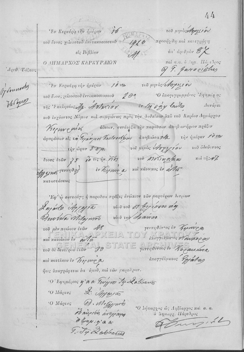 [Αρχείο] GRGSA-KER_REGD00 ΛΗΞΙΑΡΧΕΙΟ ΚΕΡΚΥΡΑΣ - Ληξιαρχικές Πράξεις Θανάτων [1841 - 1932] Περιεχόμενα: Αριθμός πράξεων 1 - 600. Βιβλίο 1. Αριθμός πράξεων 1 - 565. |
