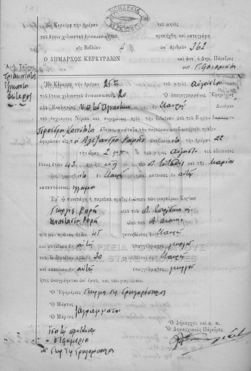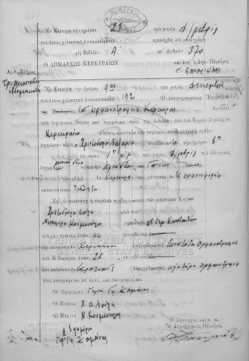 File #1921 - ΛΗΞΙΑΡΧΕΙΟ ΚΕΡΚΥΡΑΣ  [1921]