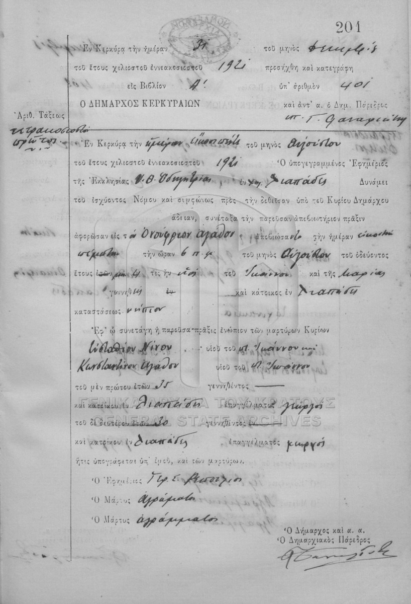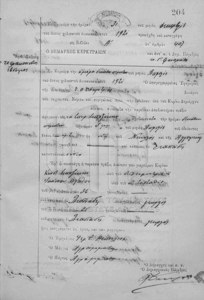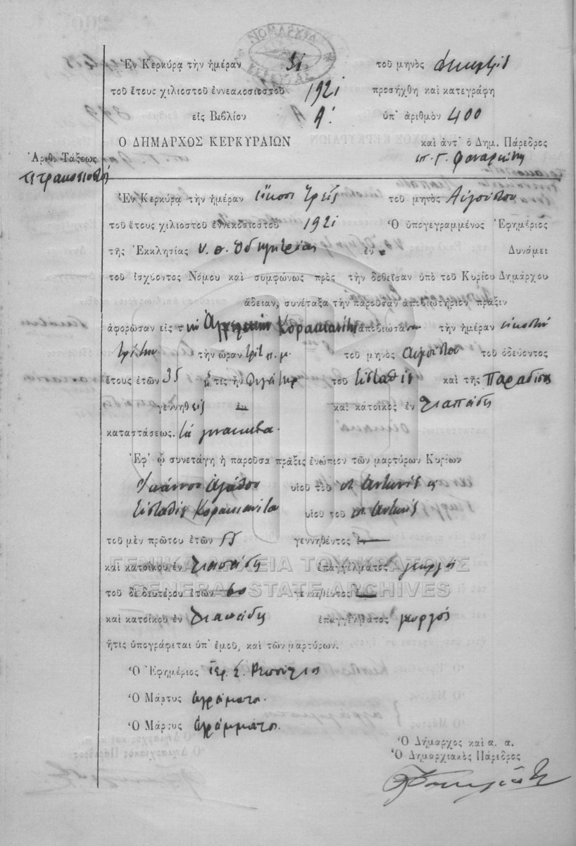 Φάκελος #1921 - ΛΗΞΙΑΡΧΕΙΟ ΚΕΡΚΥΡΑΣ  [1921]