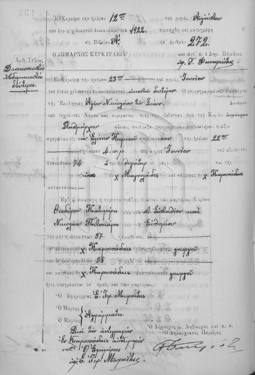 Φάκελος #1922 - ΛΗΞΙΑΡΧΕΙΟ ΚΕΡΚΥΡΑΣ  [1922]