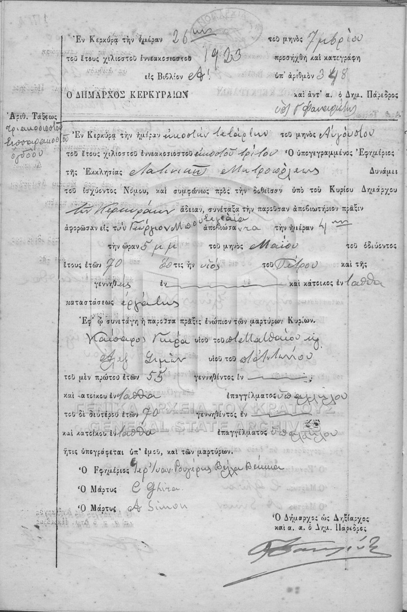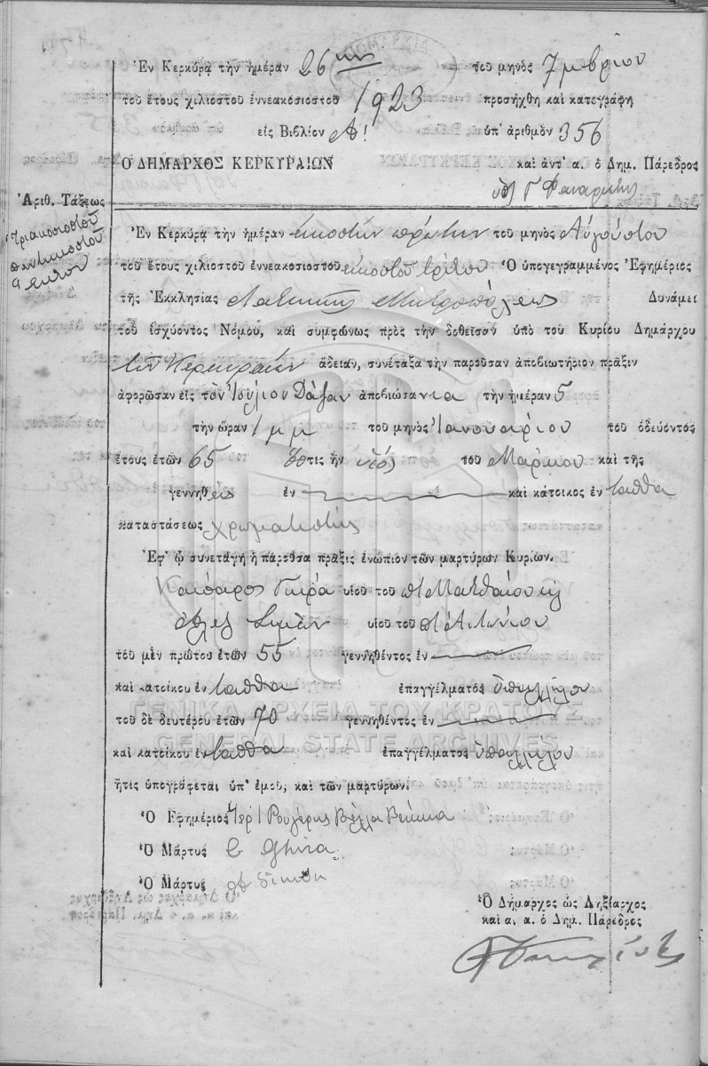 File #1923 - ΛΗΞΙΑΡΧΕΙΟ ΚΕΡΚΥΡΑΣ  [1923]