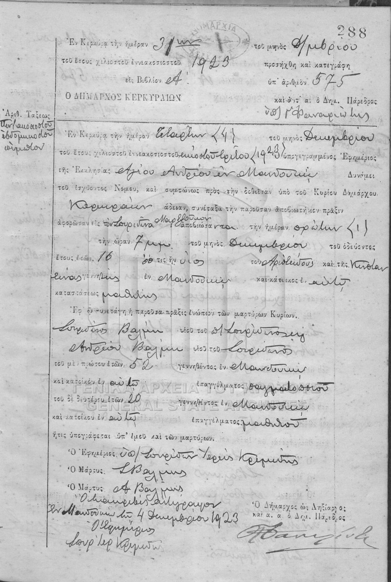 Subfile #001 - ΛΗΞΙΑΡΧΕΙΟ ΚΕΡΚΥΡΑΣ  [1923]