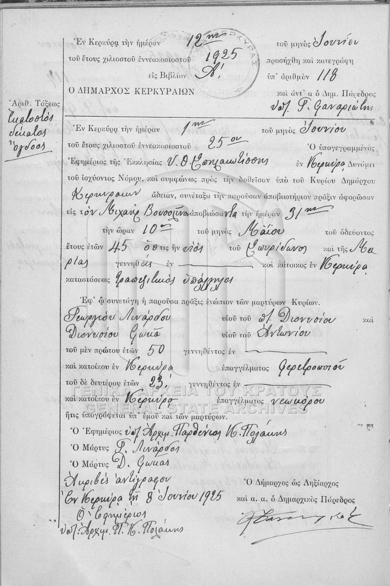 Subfile #001 - ΛΗΞΙΑΡΧΕΙΟ ΚΕΡΚΥΡΑΣ  [1925]