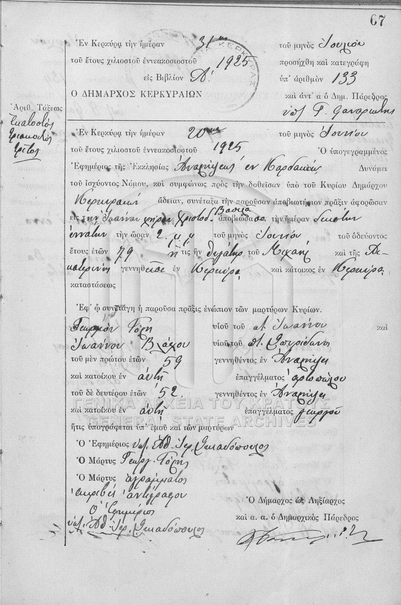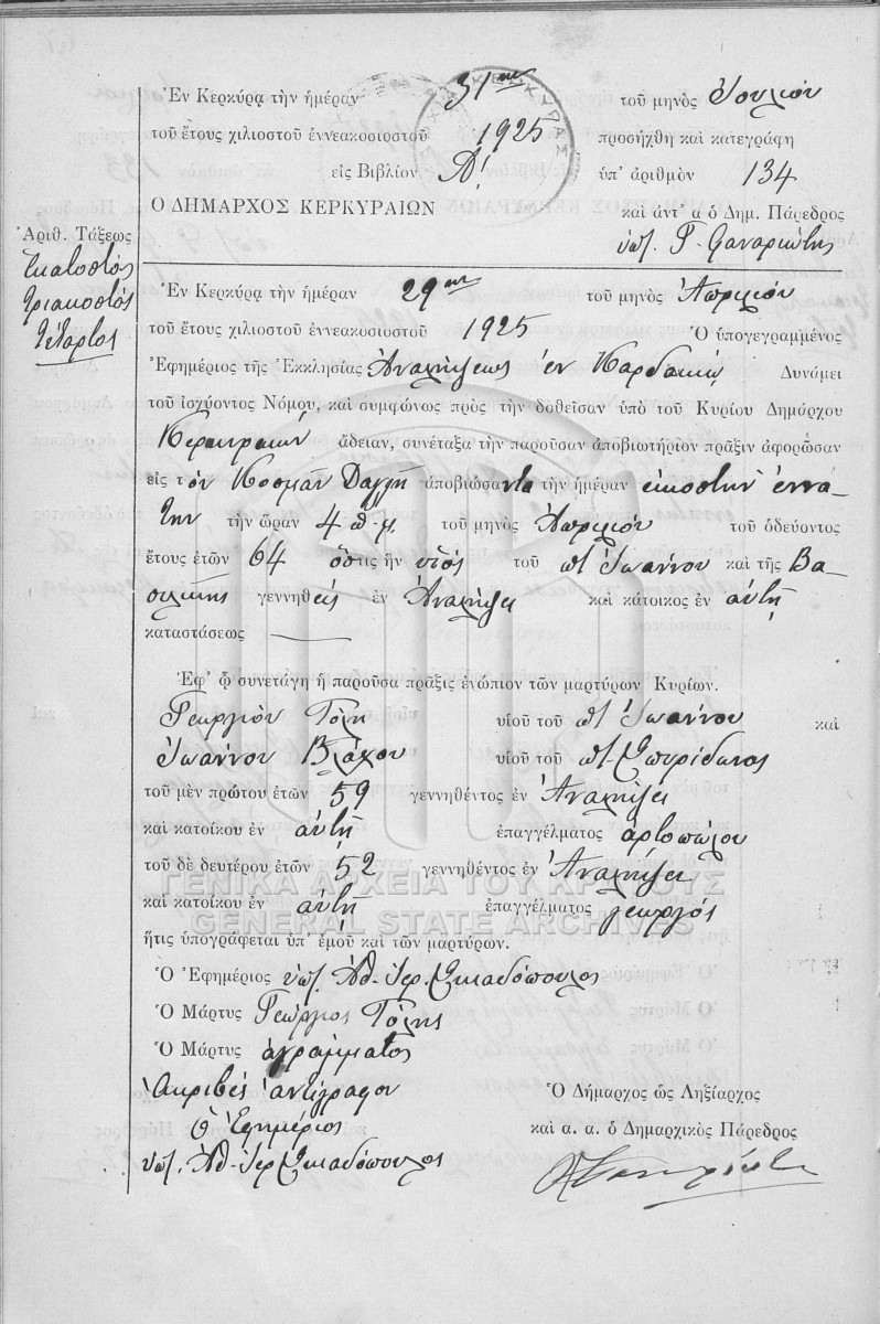 File #1925 - ΛΗΞΙΑΡΧΕΙΟ ΚΕΡΚΥΡΑΣ  [1925]