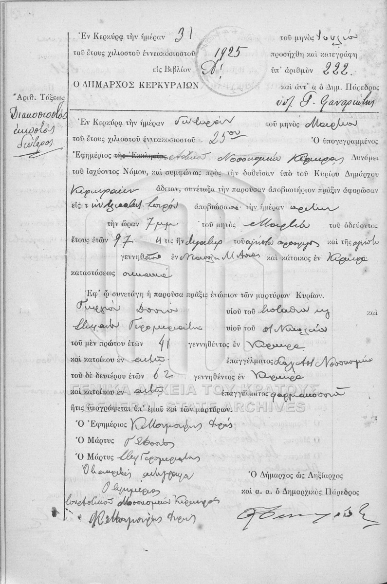 File #1925 - ΛΗΞΙΑΡΧΕΙΟ ΚΕΡΚΥΡΑΣ  [1925]