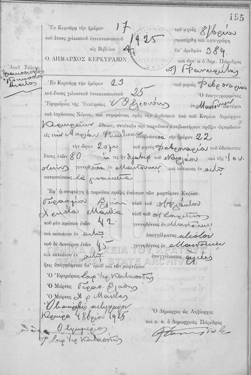 Υποφάκελος #001 - ΛΗΞΙΑΡΧΕΙΟ ΚΕΡΚΥΡΑΣ  [1925]