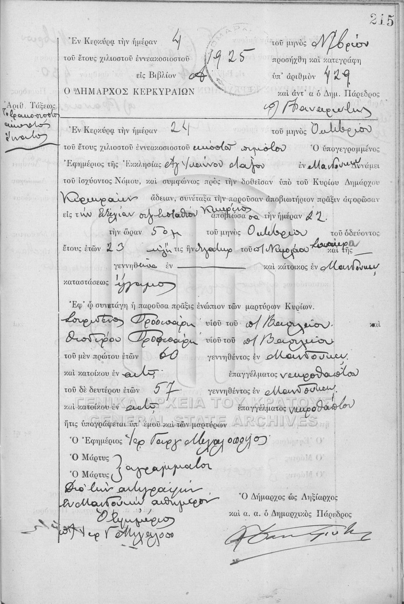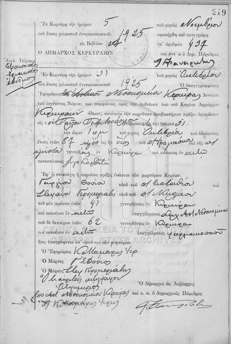 File #1925 - ΛΗΞΙΑΡΧΕΙΟ ΚΕΡΚΥΡΑΣ  [1925]