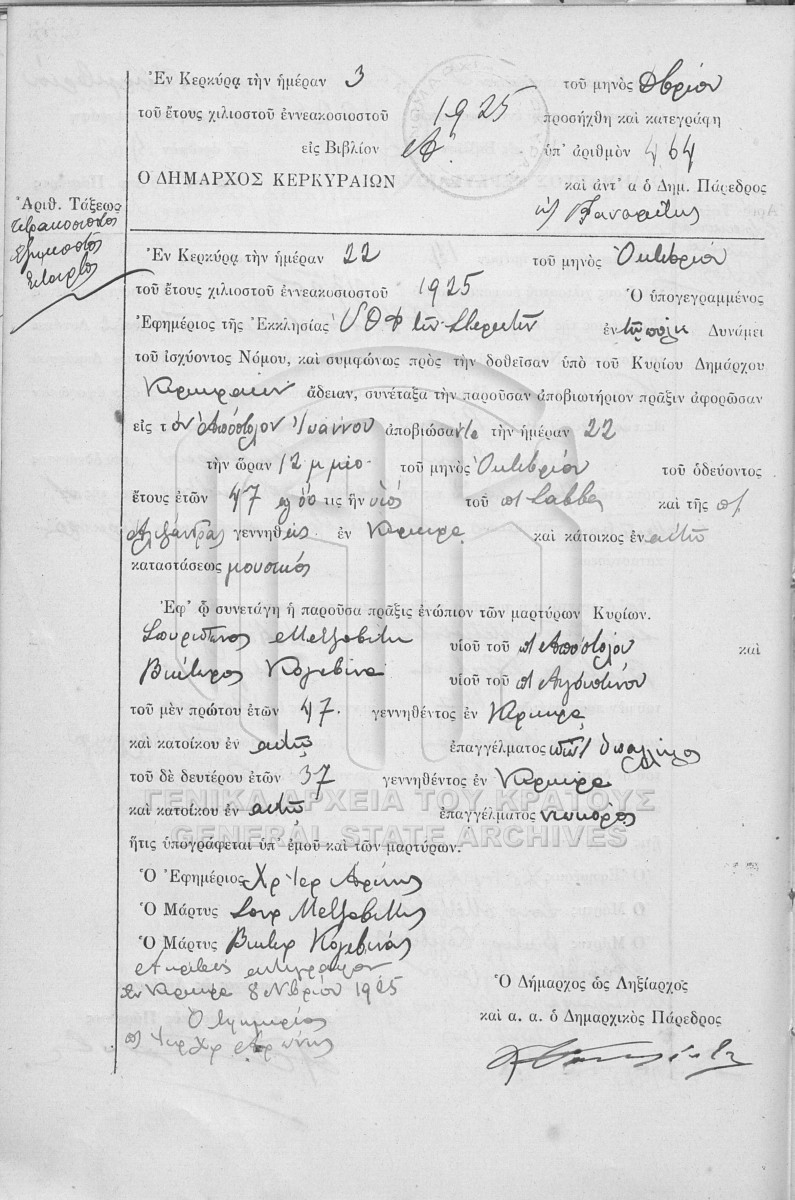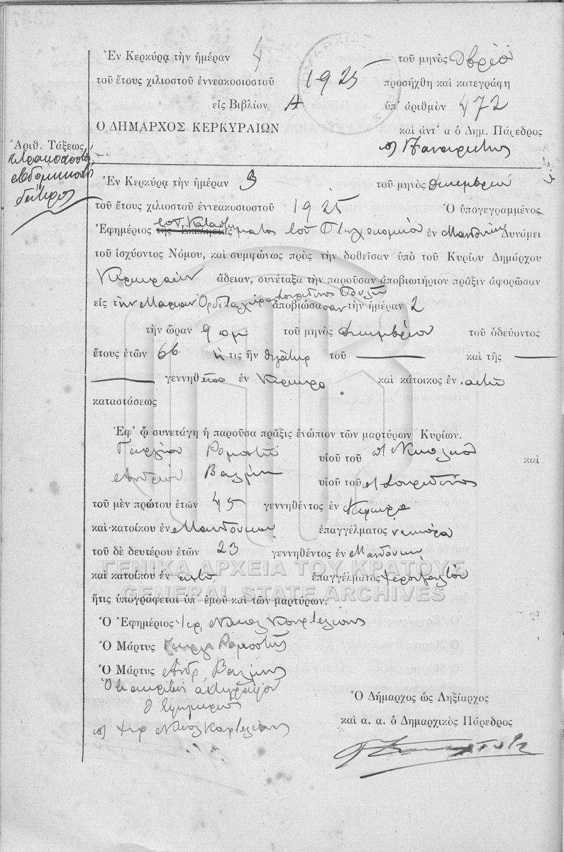 File #1925 - ΛΗΞΙΑΡΧΕΙΟ ΚΕΡΚΥΡΑΣ  [1925]