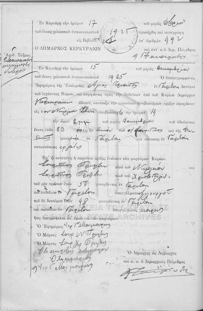File #1925 - ΛΗΞΙΑΡΧΕΙΟ ΚΕΡΚΥΡΑΣ  [1925]
