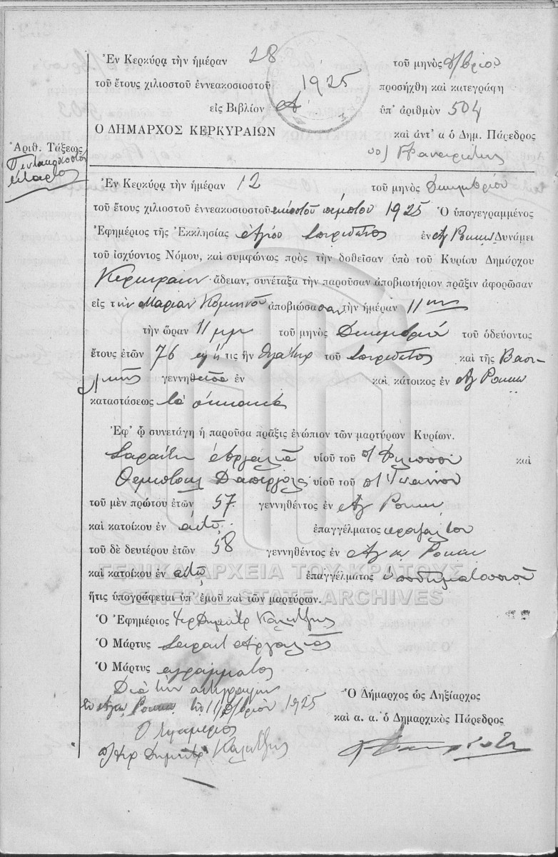 File #1925 - ΛΗΞΙΑΡΧΕΙΟ ΚΕΡΚΥΡΑΣ  [1925]