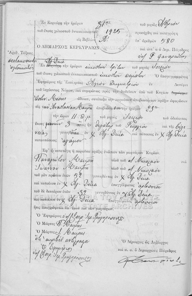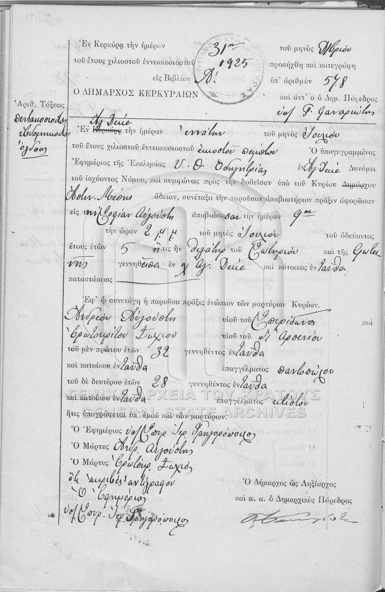 Υποφάκελος #001 - ΛΗΞΙΑΡΧΕΙΟ ΚΕΡΚΥΡΑΣ  [1925]