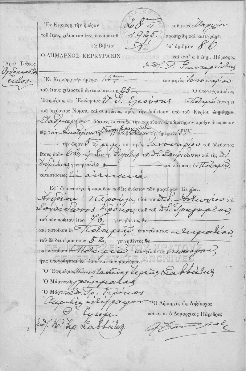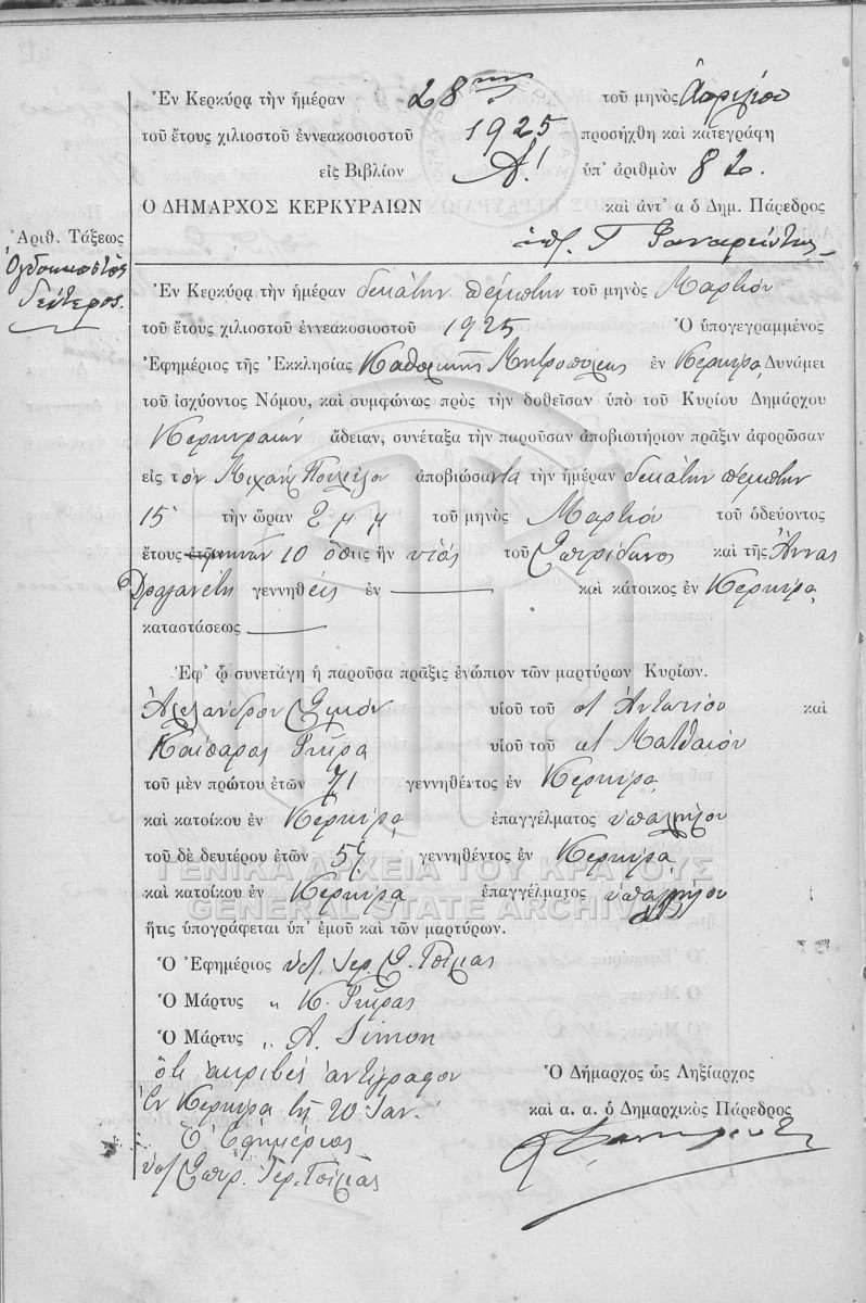 Fichier #1925 - ΛΗΞΙΑΡΧΕΙΟ ΚΕΡΚΥΡΑΣ  [1925]