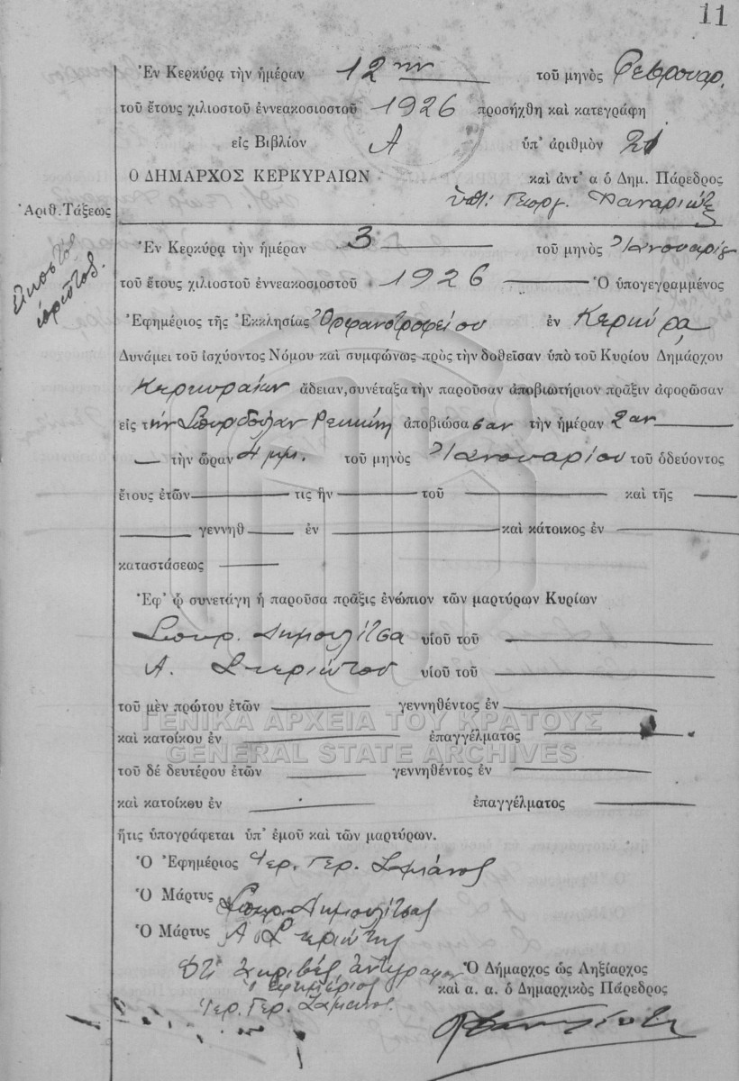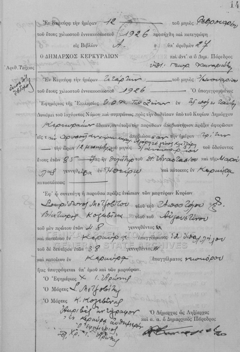 Υποφάκελος #001 - ΛΗΞΙΑΡΧΕΙΟ ΚΕΡΚΥΡΑΣ  [1926]