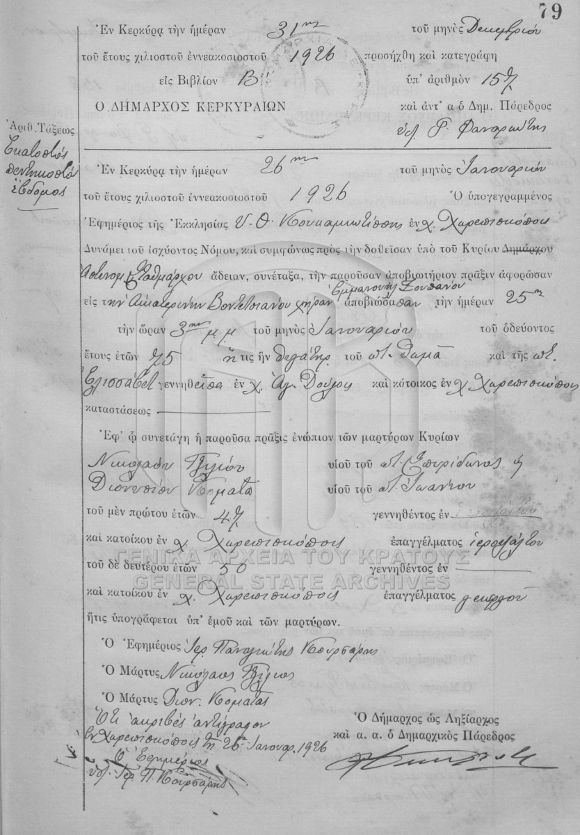 Φάκελος #1926 - ΛΗΞΙΑΡΧΕΙΟ ΚΕΡΚΥΡΑΣ  [1926]