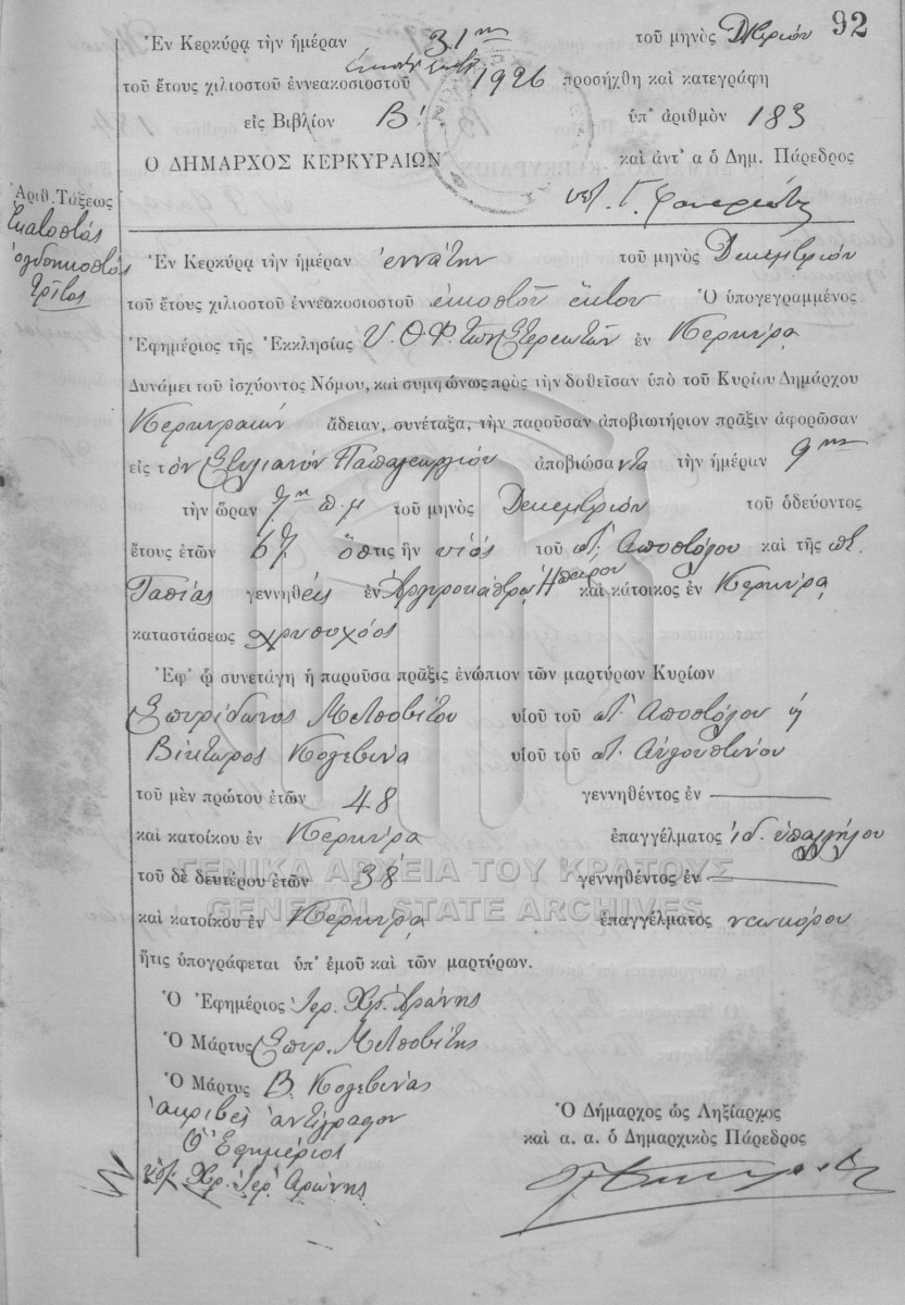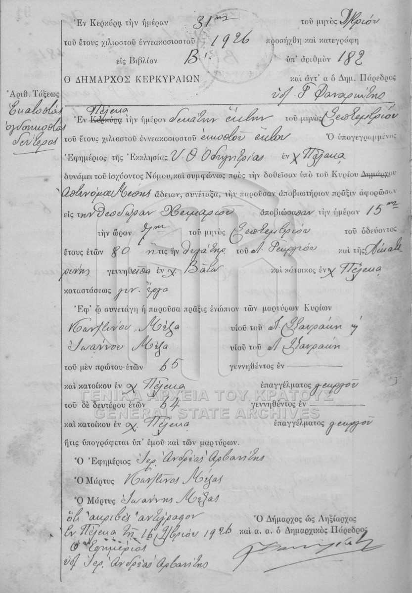 File #1926 - ΛΗΞΙΑΡΧΕΙΟ ΚΕΡΚΥΡΑΣ  [1926]