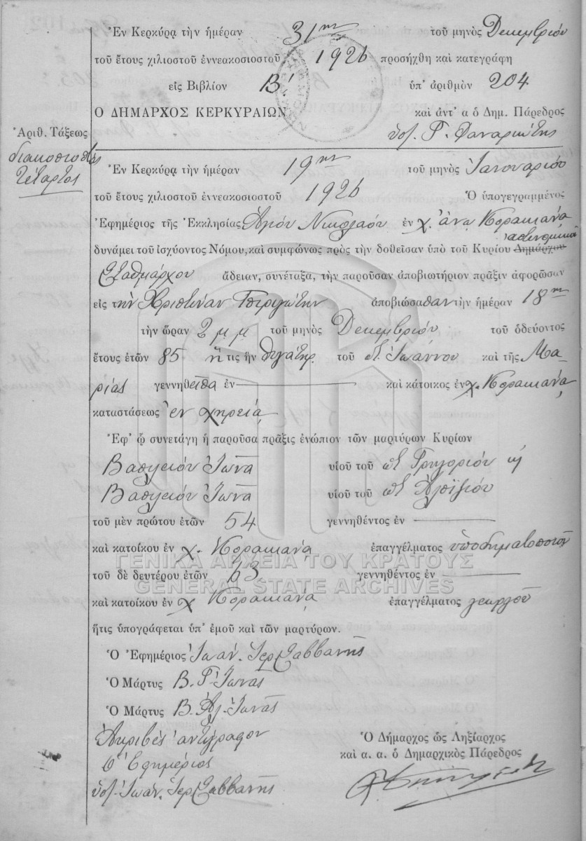 File #1926 - ΛΗΞΙΑΡΧΕΙΟ ΚΕΡΚΥΡΑΣ  [1926]