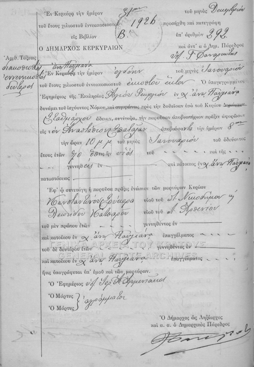 File #1926 - ΛΗΞΙΑΡΧΕΙΟ ΚΕΡΚΥΡΑΣ  [1926]