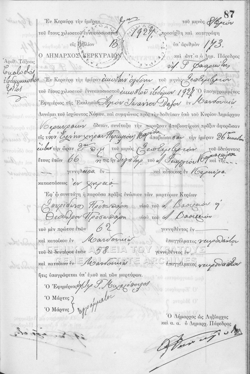 File #1927 - ΛΗΞΙΑΡΧΕΙΟ ΚΕΡΚΥΡΑΣ  [1927]