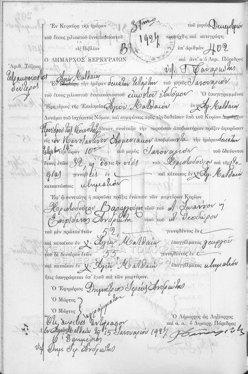 Subfile #002 - ΛΗΞΙΑΡΧΕΙΟ ΚΕΡΚΥΡΑΣ  [1927]