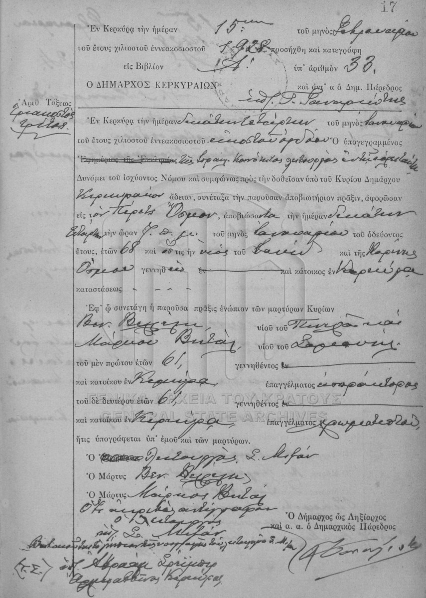 Υποφάκελος #001 - ΛΗΞΙΑΡΧΕΙΟ ΚΕΡΚΥΡΑΣ  [1928]