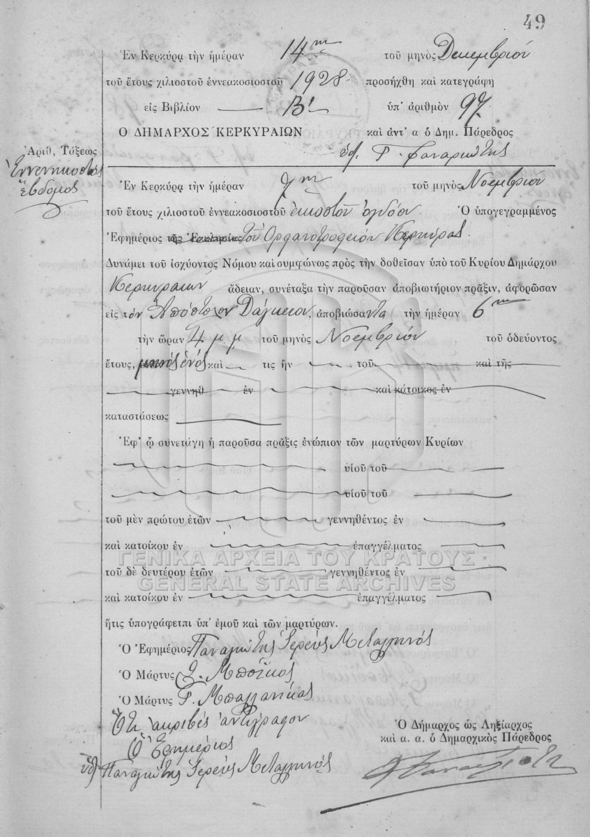 Φάκελος #1928 - ΛΗΞΙΑΡΧΕΙΟ ΚΕΡΚΥΡΑΣ  [1928]