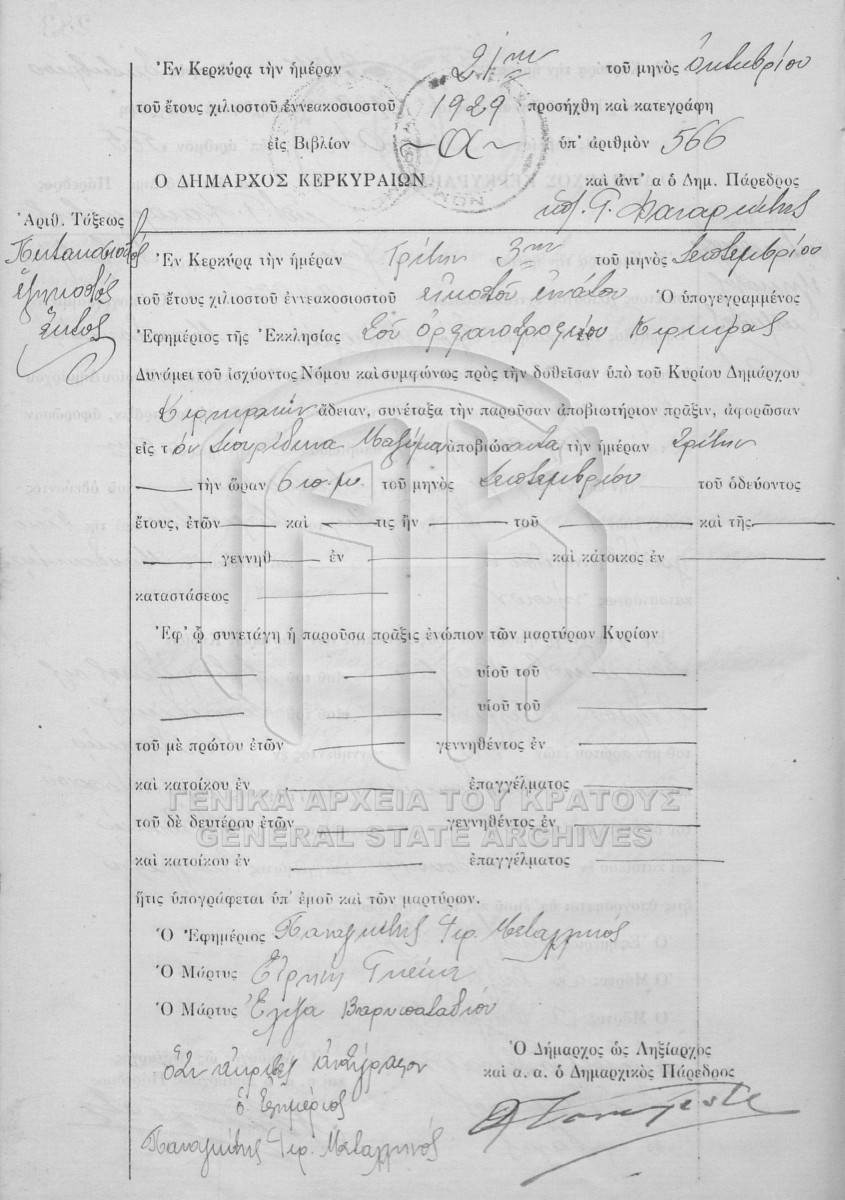 Φάκελος #1929 - ΛΗΞΙΑΡΧΕΙΟ ΚΕΡΚΥΡΑΣ  [1929]
