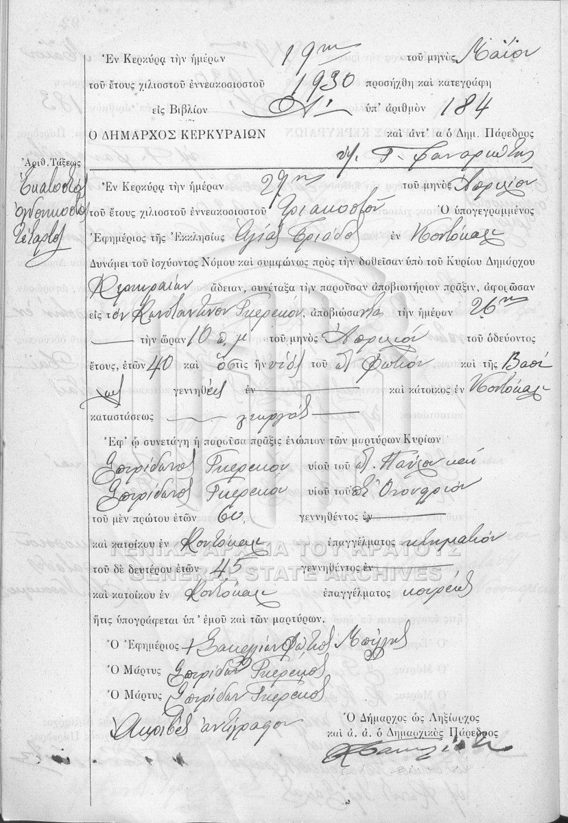 File #1930 - ΛΗΞΙΑΡΧΕΙΟ ΚΕΡΚΥΡΑΣ  [1930]