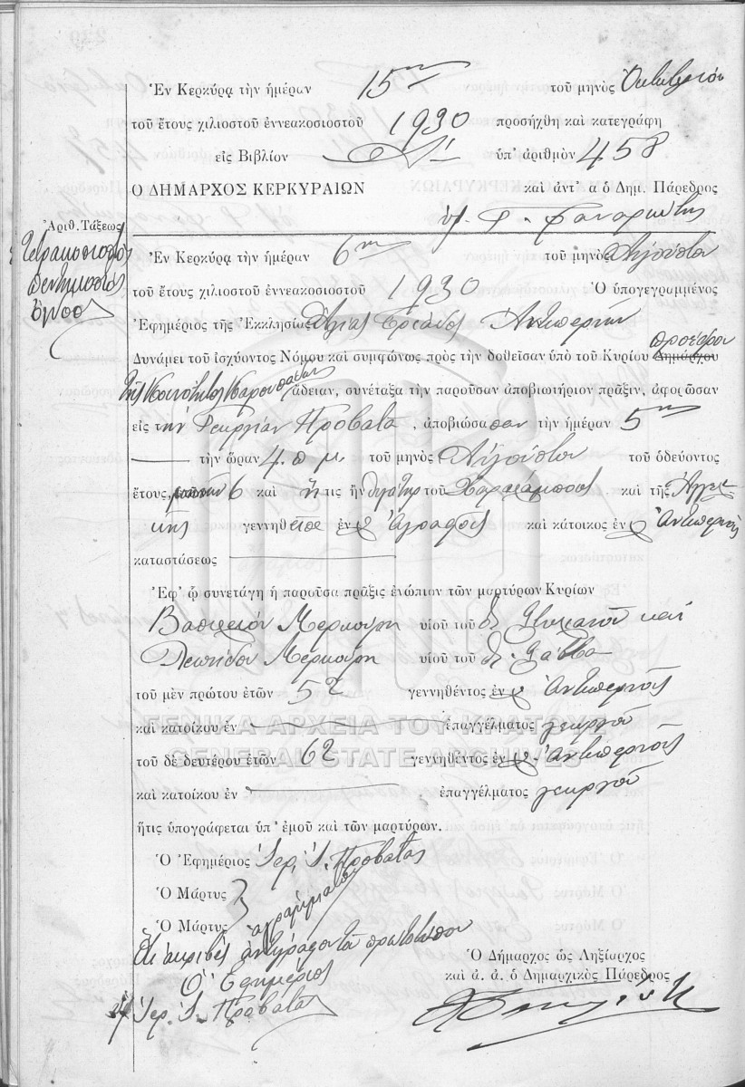 Subfile #001 - ΛΗΞΙΑΡΧΕΙΟ ΚΕΡΚΥΡΑΣ  [1930]
