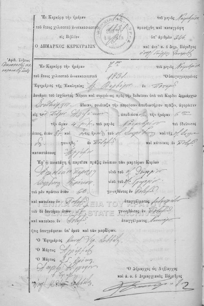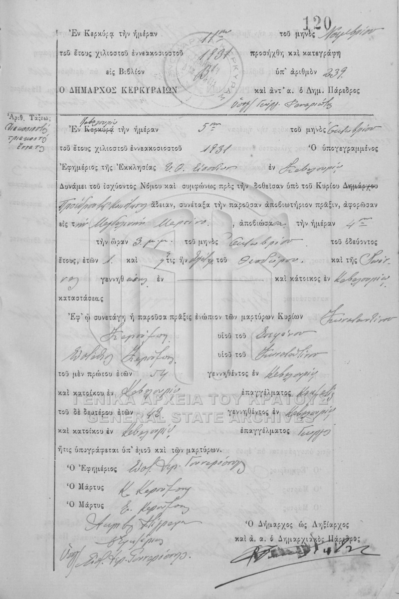 Υποφάκελος #002 - ΛΗΞΙΑΡΧΕΙΟ ΚΕΡΚΥΡΑΣ  [1931]