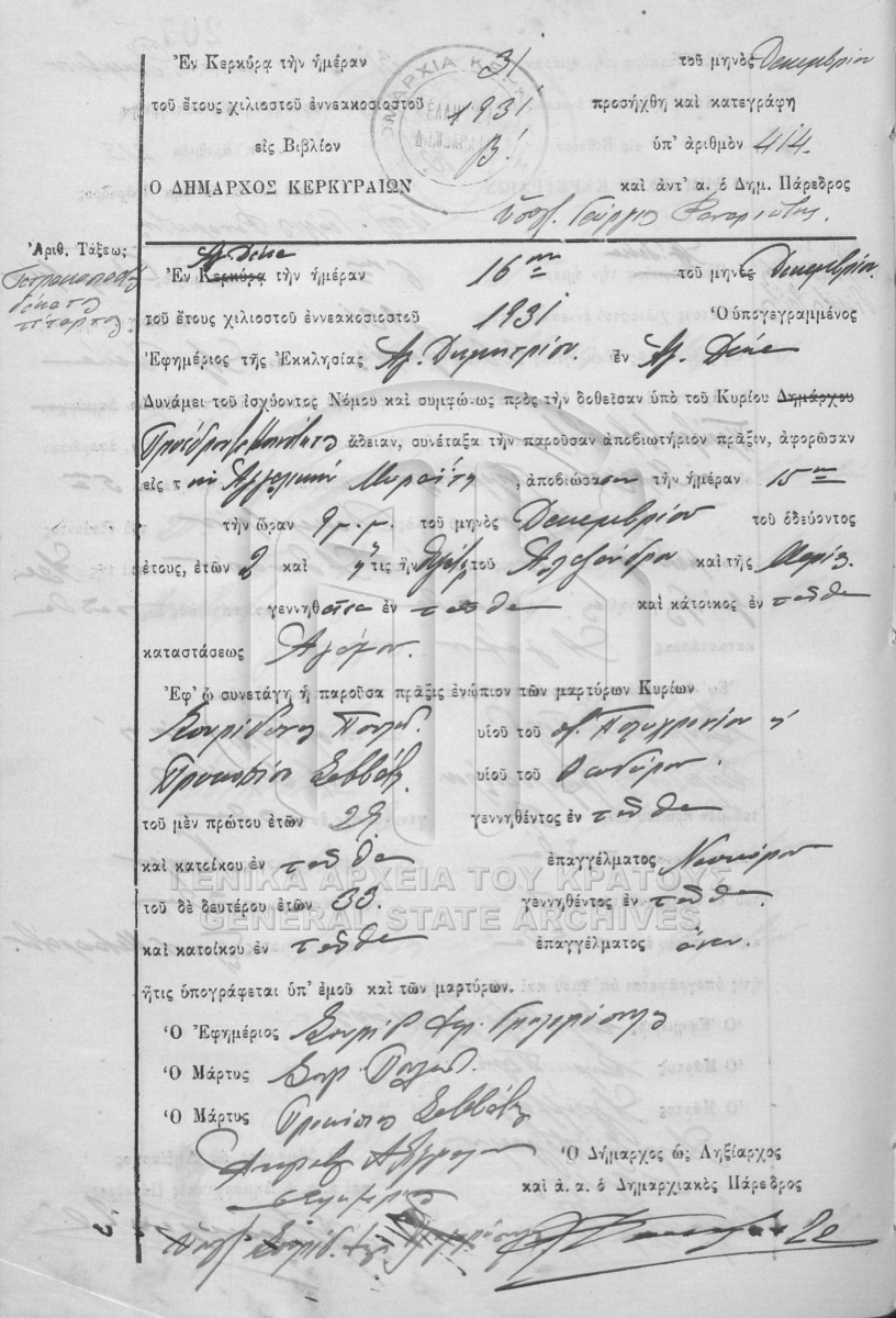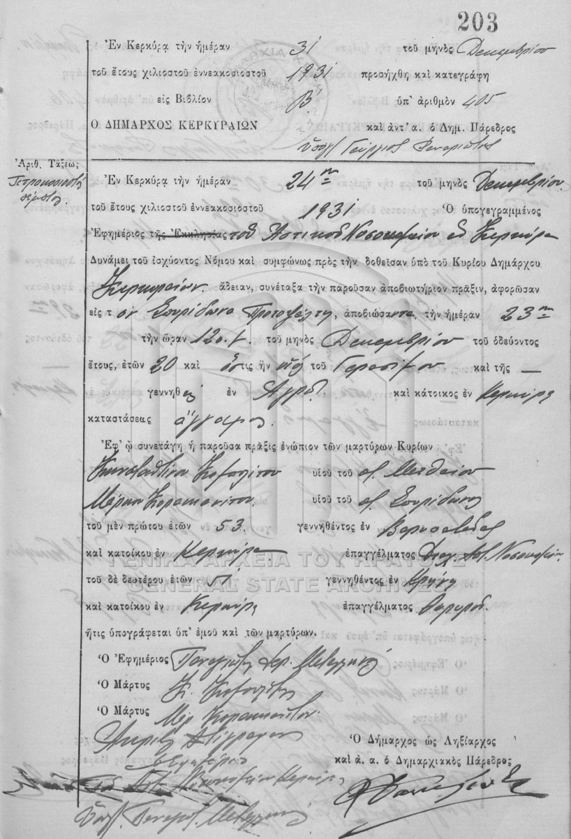 File #1931 - ΛΗΞΙΑΡΧΕΙΟ ΚΕΡΚΥΡΑΣ  [1931]